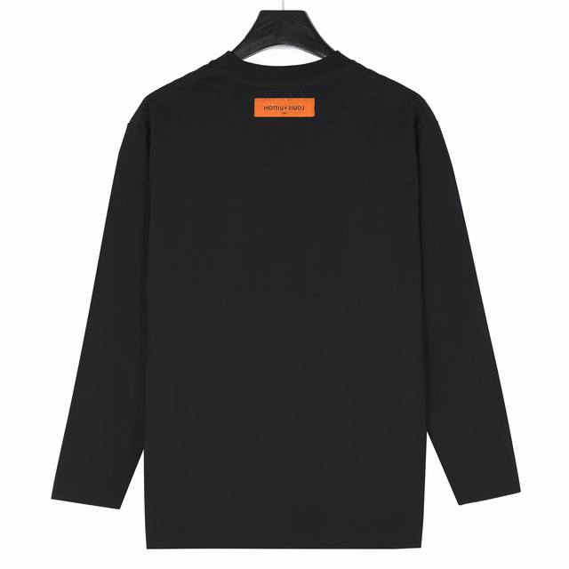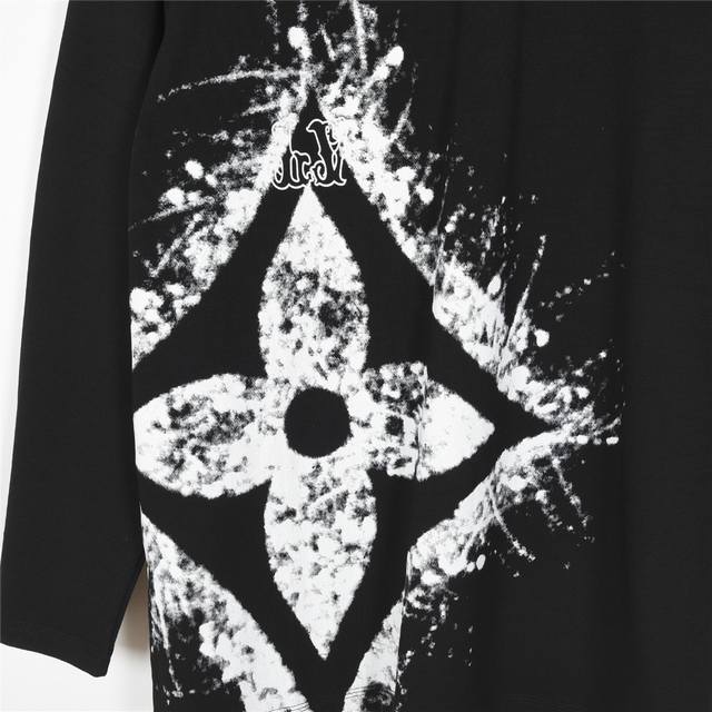 Louis Vuitton 25Fw long-sleeved T-shirt with a splash-ink print of the large four-leaf clover logo on the hem. This is a wardrobe essential. The overall effect is truly exquisite. Made from custom-woven 300g heavyweight double-yarn cotton fabric with a rich texture, it features a splash-ink print of the large four-leaf clover logo on the hem and a simple yellow custom logo label on the back, embodying Louis Vuitton style. Made from G32 double-yarn pure cotton, this fabric is breathable and skin-friendly. This stylish and versatile piece is perfect for both men and women, making it a must-have for early fall! Colors: Black, White Sizes: SX x L