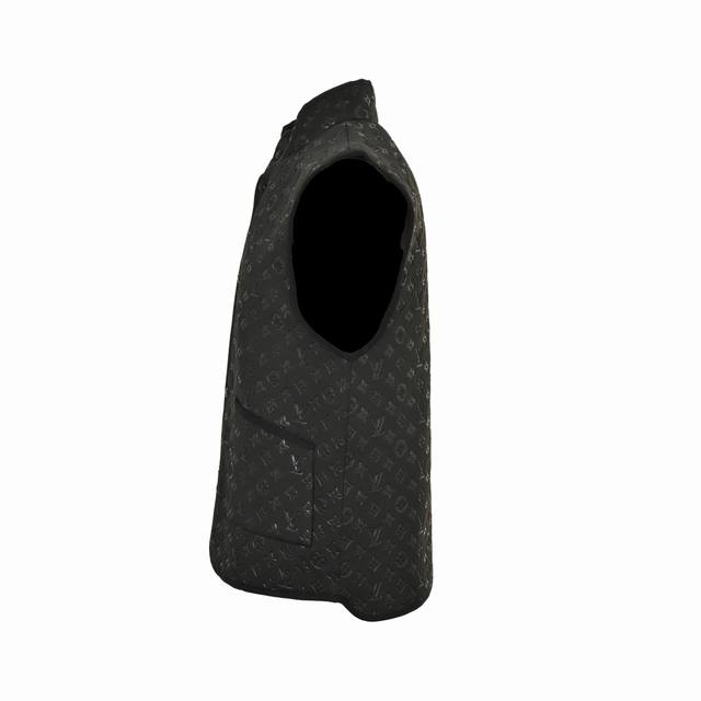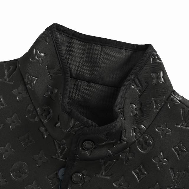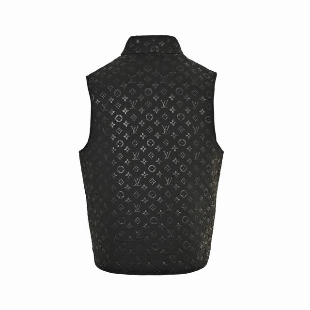 ) This vest features the brand's iconic Monogram embossed design, integrating the brand logo into the fabric texture for a subtle yet recognizable visual effect. The stand-up collar and button placket combine style and practicality. Side pockets provide convenient storage and add depth to the overall look. (