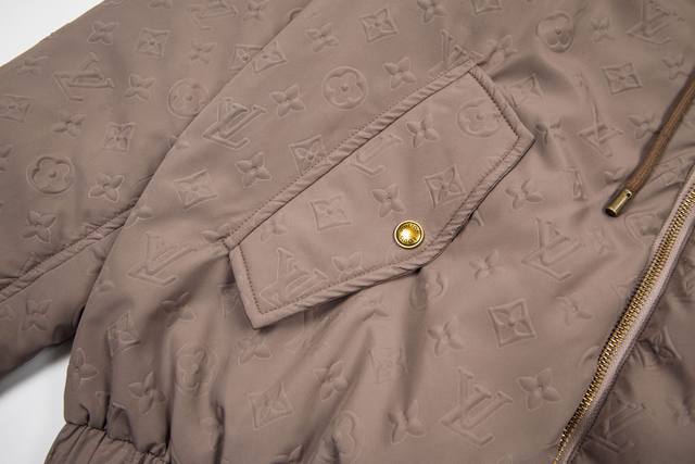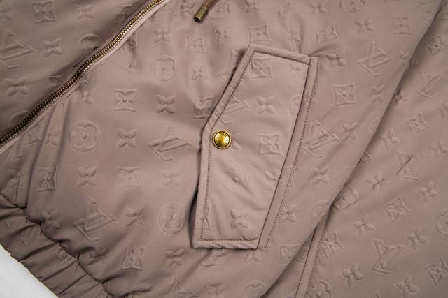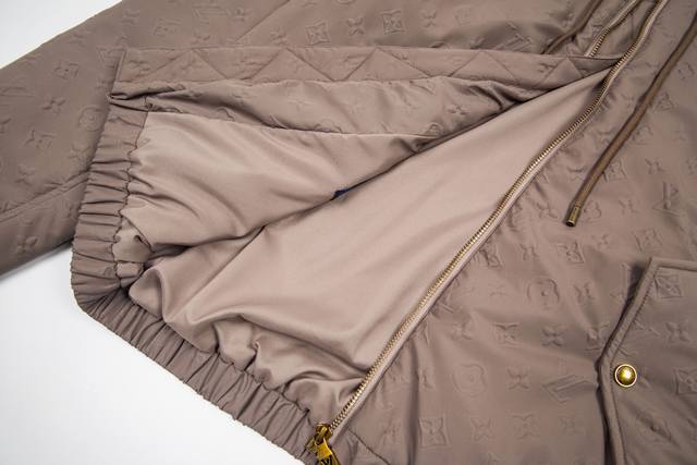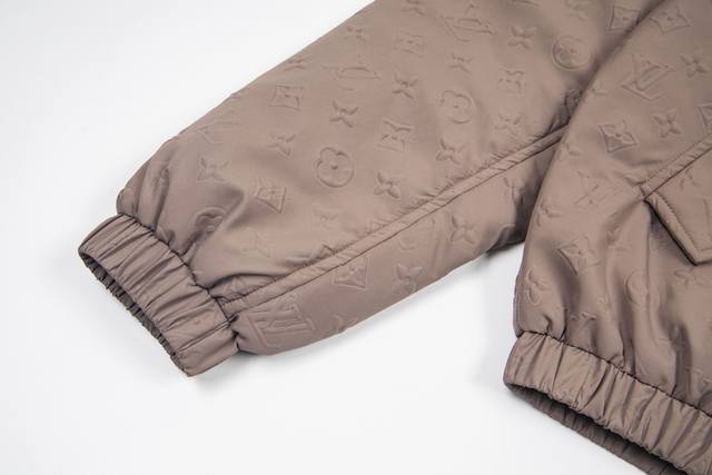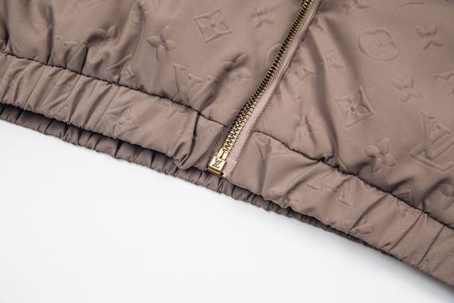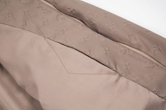 Louis Vuitton 25Fw New Monogram Padded Jacquard Windproof Jacket. This hooded windproof jacket, a refreshed classic outerwear design from the Spring/Summer 2025 runway, features an all-over Monogram embossed pattern in elegant hues. Lightweight padding and a silky lining enhance comfort. It has a zip closure, an adjustable drawstring hood, and 1:1 replica metal hardware. The fabric is soft and comfortable, offering a luxurious and stylish look