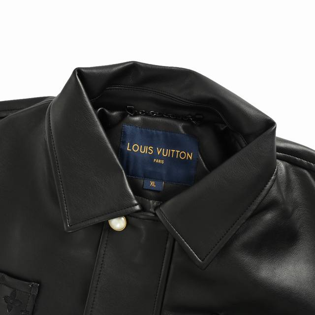 This is a high-quality, classic version of the Louis Vuitton logo embossed leather jacket. This versatile style is suitable for both men and women.