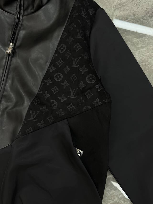 Louis Vuitton * 25S New Arrival! Original custom-made patchwork leather jacquard jacket, made with custom composite materials, the leather is delicate, soft, and glossy. The entire jacket features a patchwork design with all-over jacquard printing at the seams. Custom hardware, elastic cuffs and hem, versatile for various outfits, custom accessories, complete tags, unisex! European sizes: M