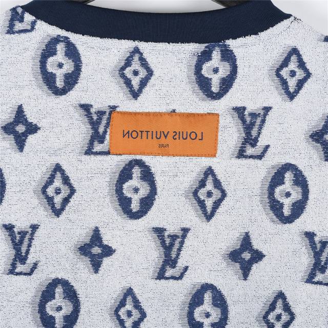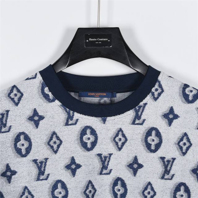 Louis Vuitton 25Ss all-over monogram jacquard towelling T-shirt. This large logo has been refined and updated, inspired by vintage embroidery from the 1980s. Made from the same original fabric as the official short-sleeved T-shirt, it's made from the same vat-dyed fabric for a very comfortable feel. The all-over monogram jacquard print in blue and white is made of comfortable and breathable cotton, with matching neckline binding. The slim fit makes it a stylish layering piece, perfect for both inner and outer wear, perfect for spring and summer wardrobe essentials. This stylish and versatile piece is perfect for both men and women, and comes with a tag, collar label, and washed wheat labels. Pair it with matching shorts for a perfect look! Colors: White, Blue. Sizes: XS-L.