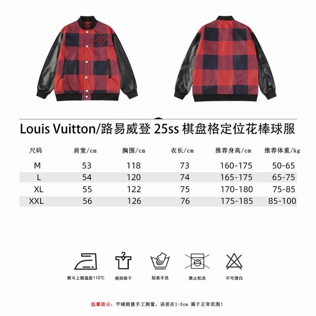 Louis Vuitton 25Ss Checkerboard Baseball Uniform. This checkerboard baseball uniform features beaded hardware that replicates the original design perfectly. The sleeves are made of pebbled leather and paired with a phoenix-patterned nylon fabric, offering comfort and a high-end feel. Available in ML, XL, and XL sizes.