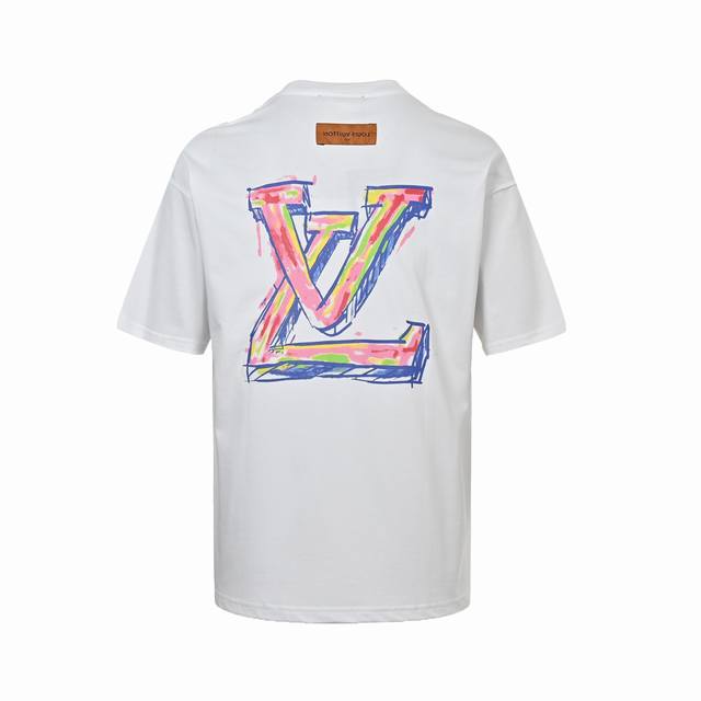 Louis Vuitton 25Ss crayon hand-painted graffiti large logo short-sleeved shirt