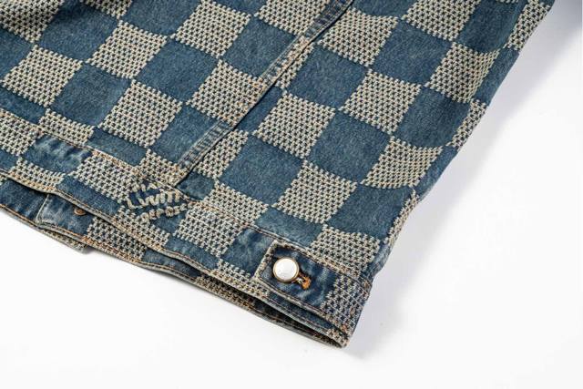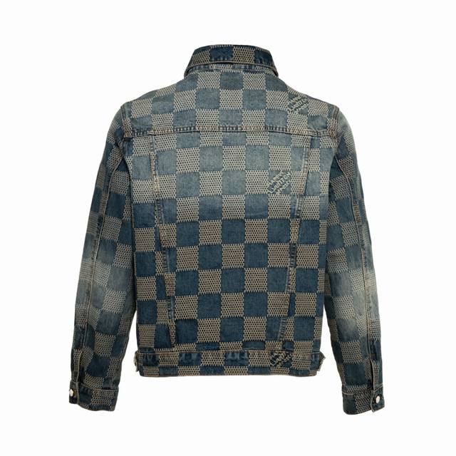 Louis Vuitton 25Ss Damier Checkered Vintage Denim Jacket (Ddd) This classic denim jacket features the iconic 3D Damier pattern, seamlessly integrating its textured jacquard design with the "Marque L.Vuitton D