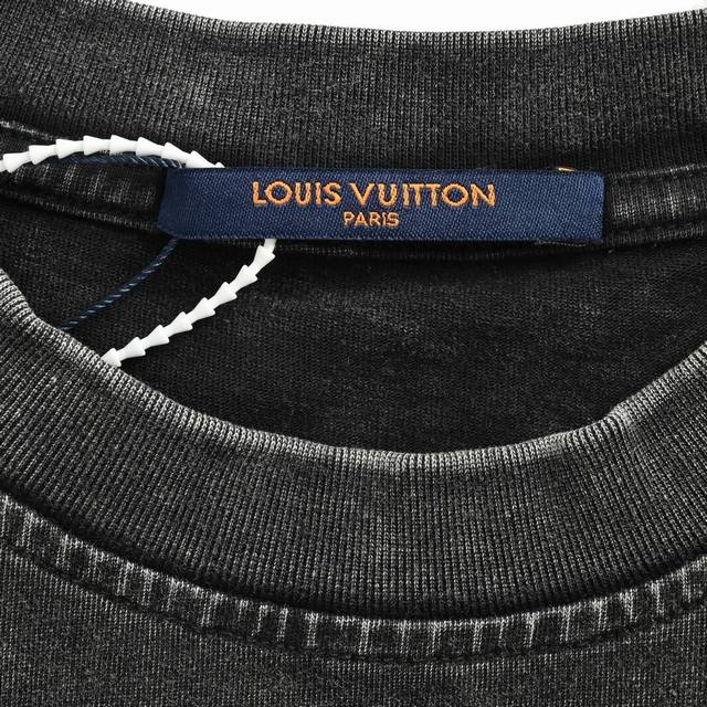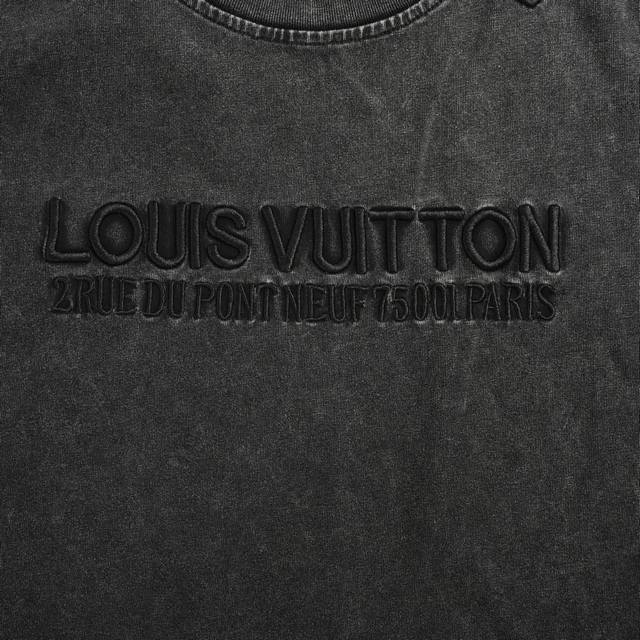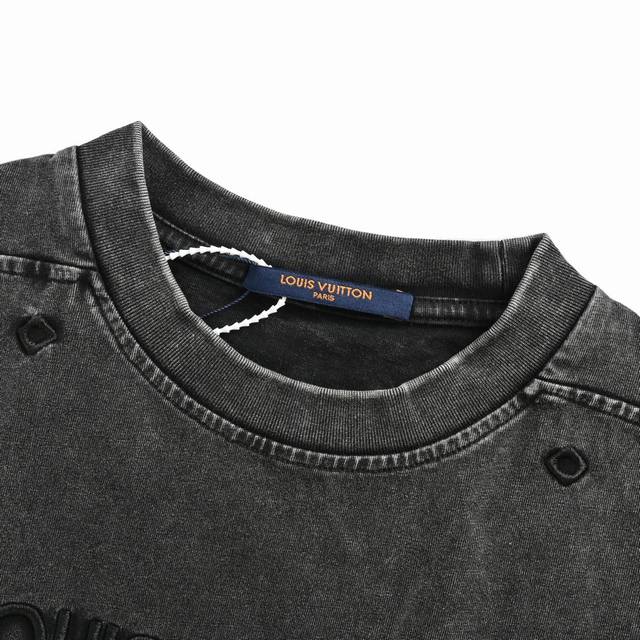 Louis Vuitton 25Ss Embroidered Lettering Washed Distressed Short Sleeves