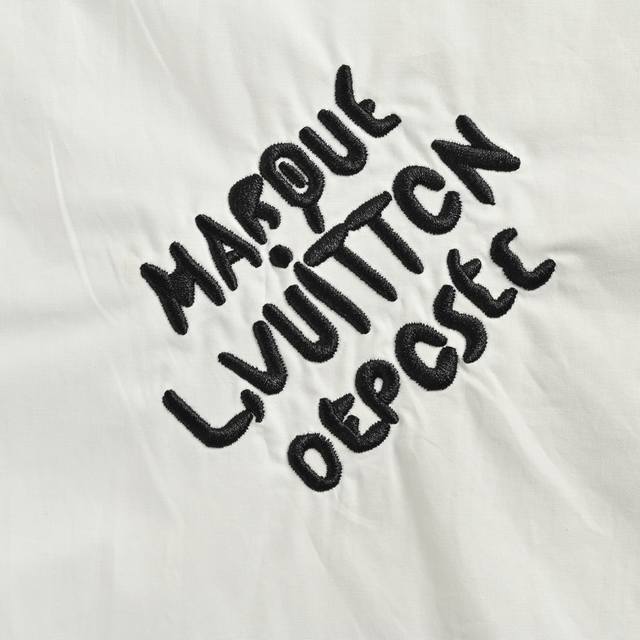 Louis Vuitton 25Ss Embroidered Logo Shirt (Ddd) Due to the custom fabric and numerous adjustments to the chest embroidery, the production speed was slow. While seemingly a simple product, it actually involves countless details. The placket, cuffs, and collar all require stripe alignment and piece-by-piece cutting. During production, each piece needs to be ironed individually to match the stripes, further extending the lead time. Shell buttons, custom wash tape, main tape, and packaging bags are the most basic tasks. In addition to the fabric's unique dotted texture, it features a distinctive button collar with double-stitched seams. The dropped shoulder line and two three-dimensional patch pockets on the left and right sides add to the design. The placket has double visible stitching and narrow eyelets. The collar, placket, and cuffs feature shell-shaped buttons. The curved hem, shorter in the front and longer in the back, adds a layered effect when worn. (Ddd Size: S-XL)