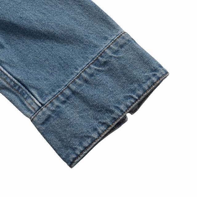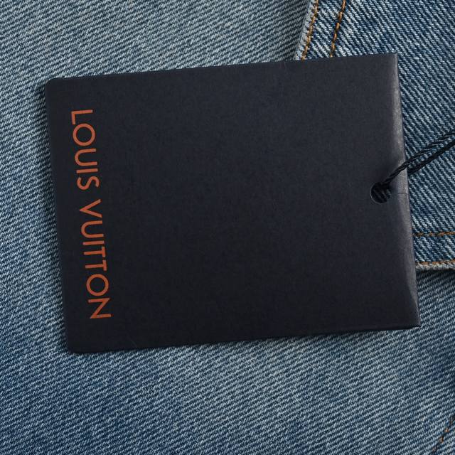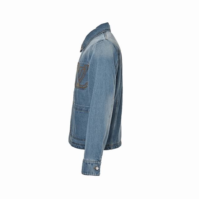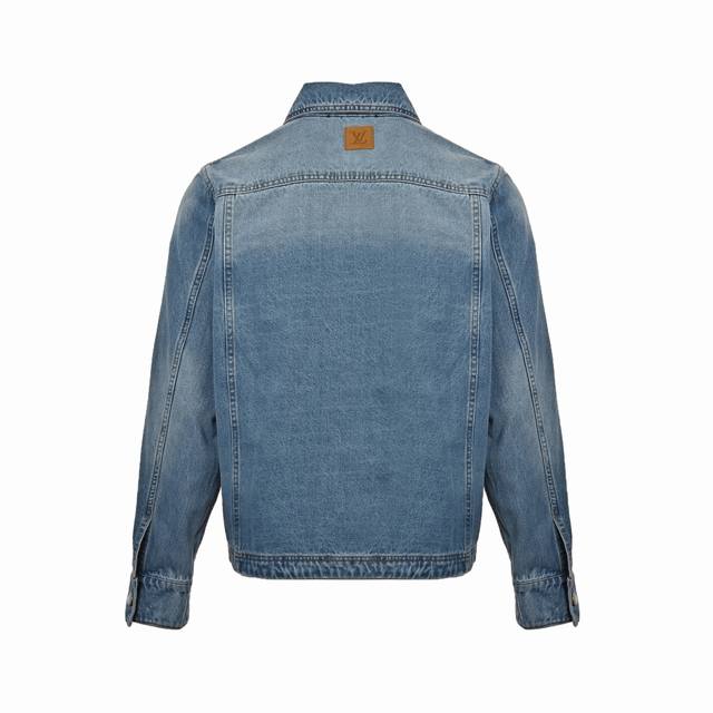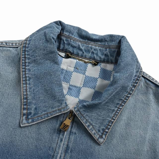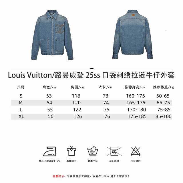 Louis Vuitton 25Ss embroidered pocket zip-up denim jacket, embroidered chest pocket with Lv logo, light blue gradient denim wash, Damier suede label on the back, logo engraving, pearlescent buttons with distressed base, classic cut, slightly loose fit, unisex. Size: S-XL.