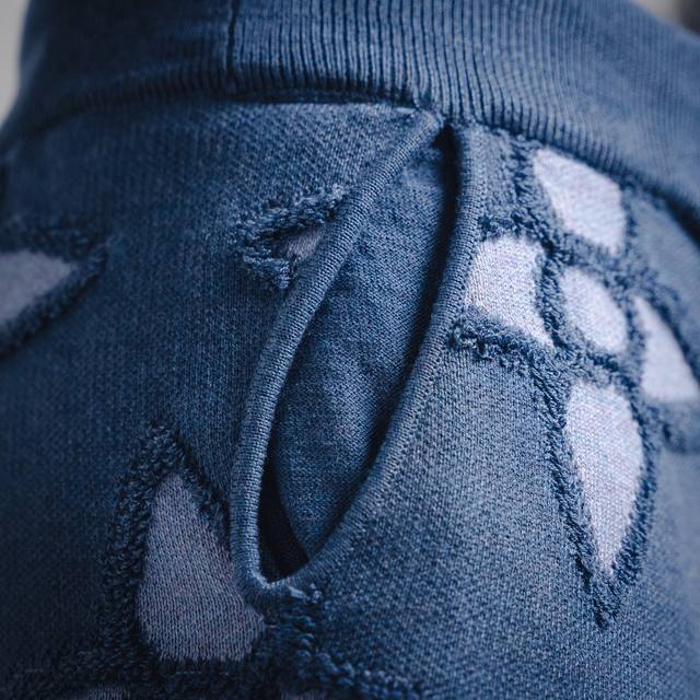 If the flowers are presented using the reverse-to-positive process, the visual craftsmanship of the sweater can be more intense. The contrast between the tissues makes the concave and convex texture more obvious, and the characteristics of the yarn are cleverly used to reflect the sense of detail.