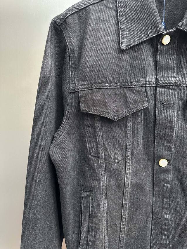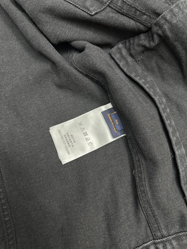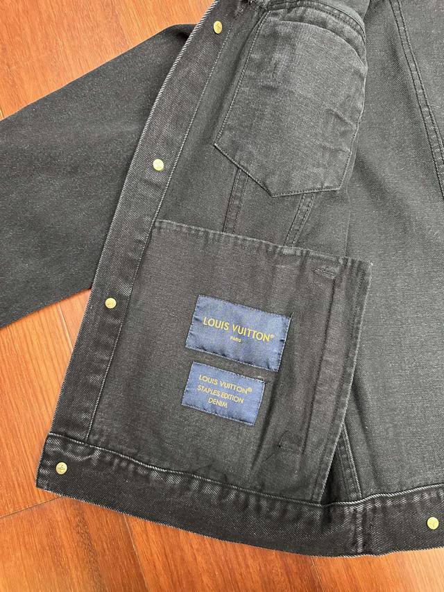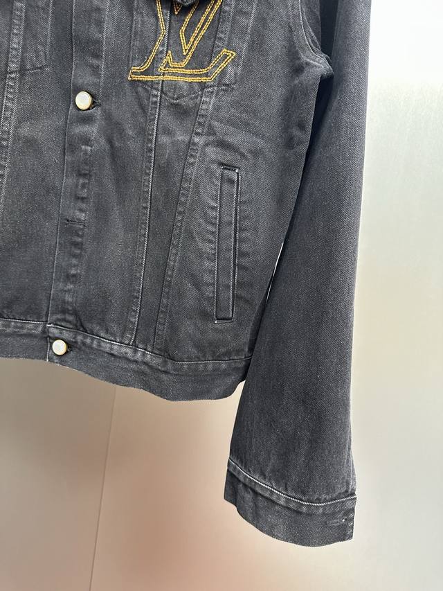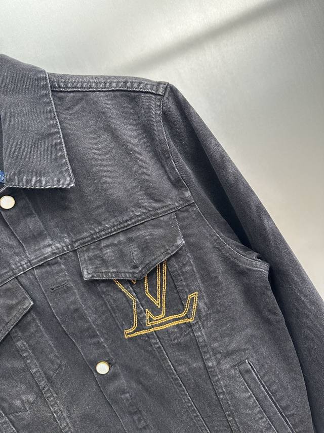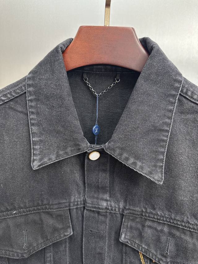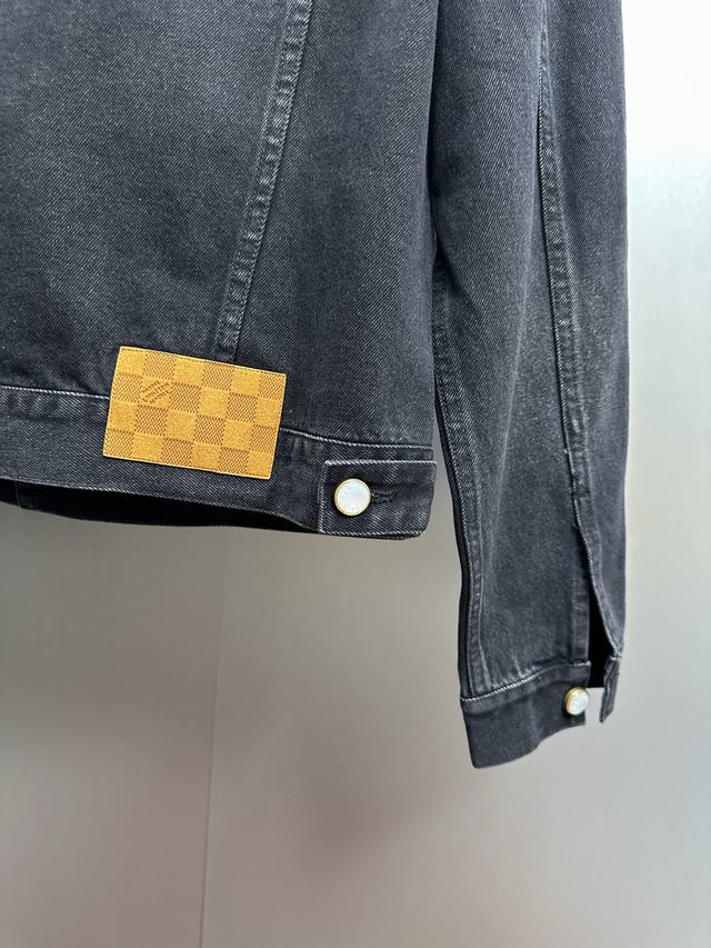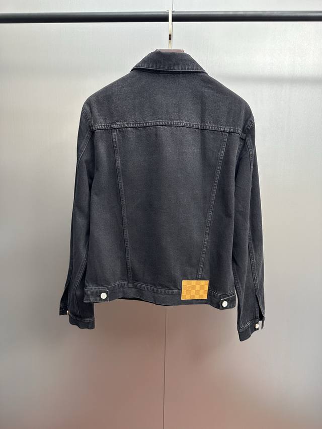 Louis Vuitton 25Ss New Arrival Denim Trucker Jacket. This trucker jacket is made of Japanese sand-washed denim, featuring embroidered Louis Vuitton lettering on the chest pocket and an embossed Louis Vuitton logo on the suede Damier label at the back, showcasing Louis Vuitton's exquisite craftsmanship. Pearlescent buttons add a touch of elegance to any everyday look. Size: 46, 48, 50, 52