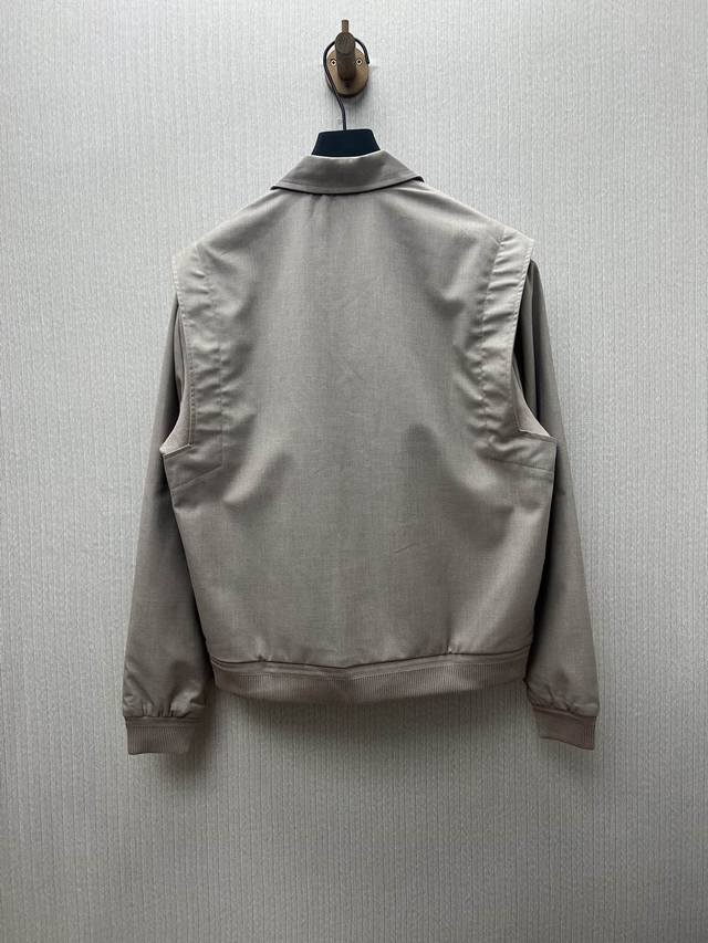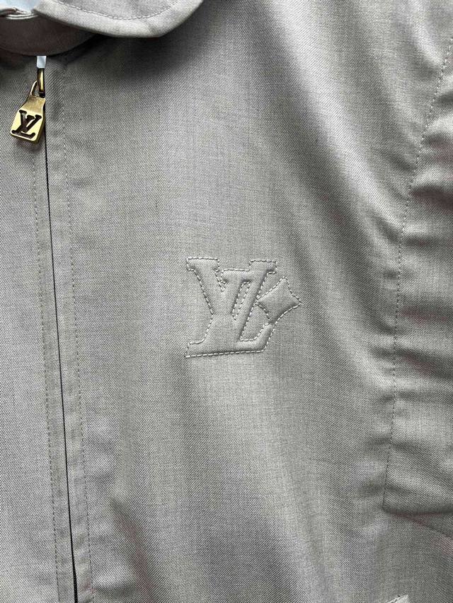 Louis Vuitton 25Ss New Bomber Jacket. This zip-up bomber jacket is made of lightweight sheep's wool, balancing elegance and comfort. Refined details include a denim curved collar, Lv Flower embossing on the chest, and knitted accordion construction on the shoulders, while ribbed hem and cuffs ensure freedom of movement. Sizes: 50, 52, 54, 56.