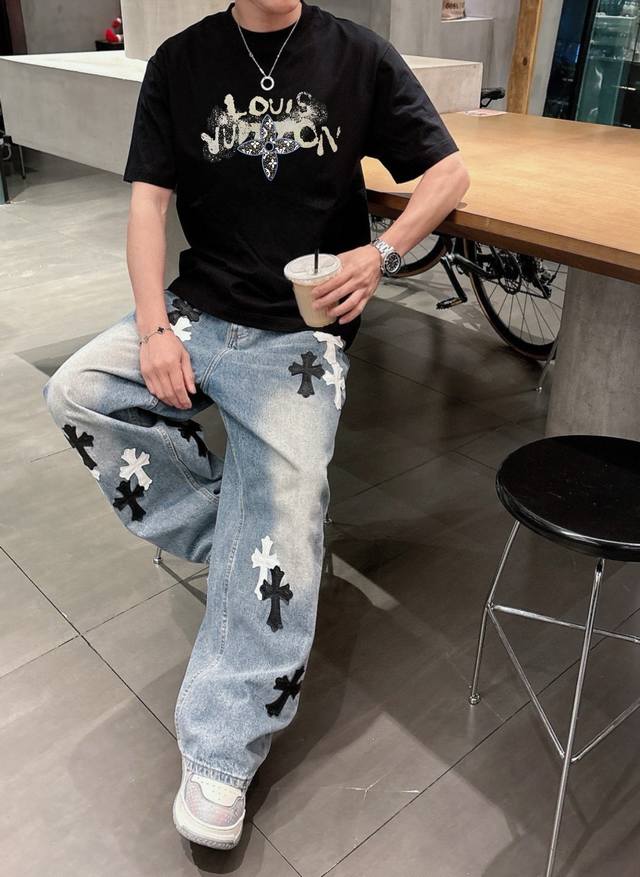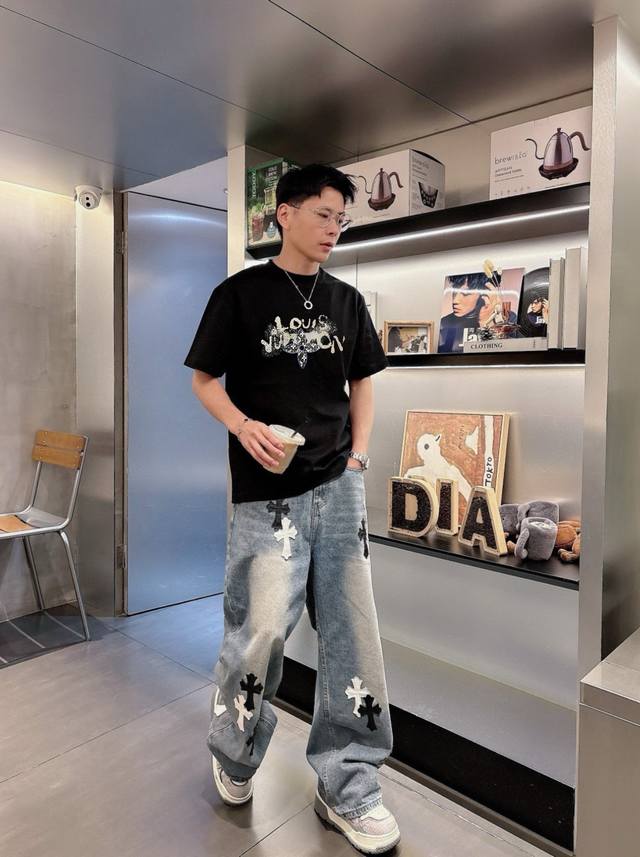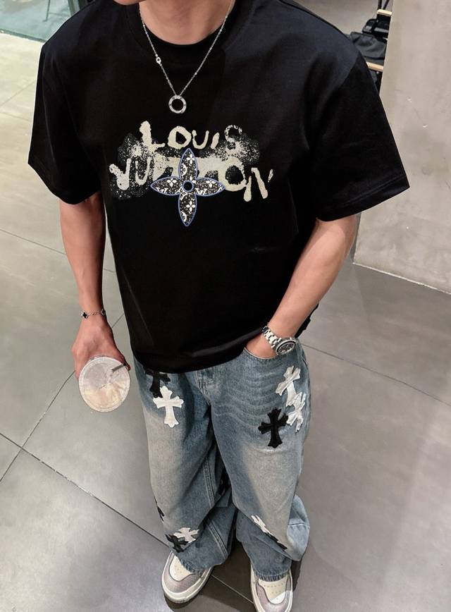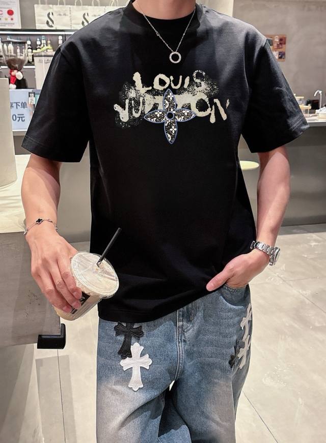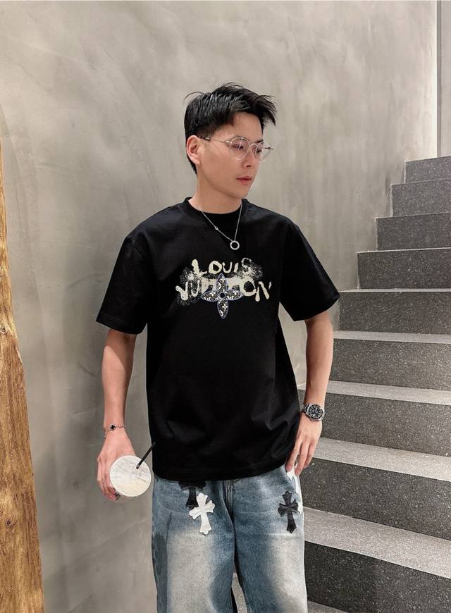 Louis Vuitton 25Ss New Classic Print Short-Sleeve T-Shirt, a celebrity-endorsed style, made of 280g double-yarn pure cotton, with a custom-dyed fabric color that won't shrink or fade. Comfortable to the touch, with a superior texture. A must-have for trendy men and women. Classic dropped shoulder design, exclusively available now! Sizes: Smlxl