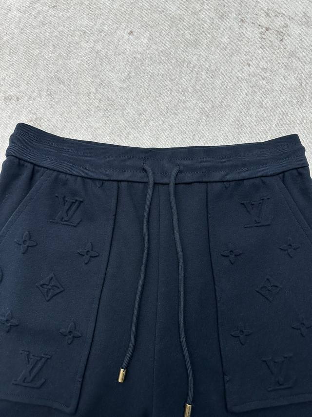 Louis Vuitton 25Ss New Embossed Details Long Pants. These comfortable track pants are made from soft cotton knit fabric, with a Monogram embossed logo on the pockets for a sophisticated look. The comfortable drawstring waist makes them suitable for any season and any style. We recommend pairing them with the matching sweatshirt for a sleek and polished travel look. Sizes: S, M, L, XL.