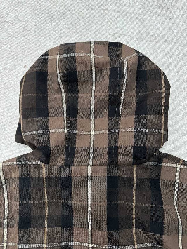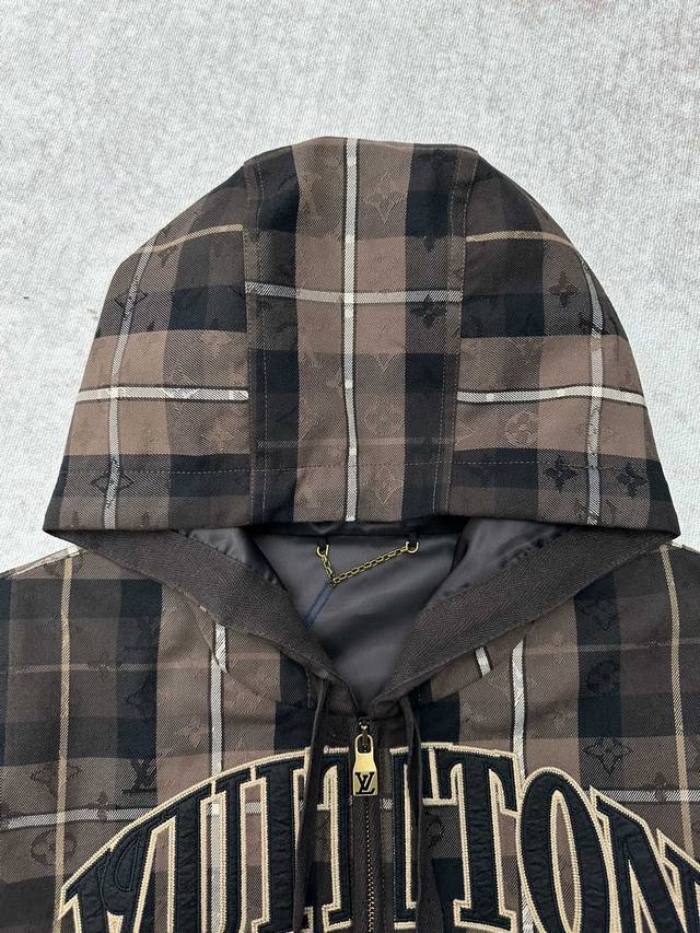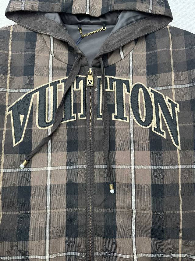 Louis Vuitton 25Ss New Hooded Waist-cinching Jacket. This zip-up hoodie is made of a wool blend with the season's Monogram jacquard pattern, making it a great choice for layering across seasons. Vuitton felt appliqu