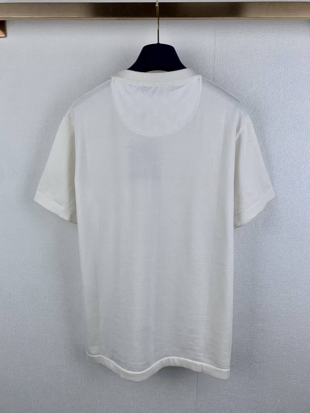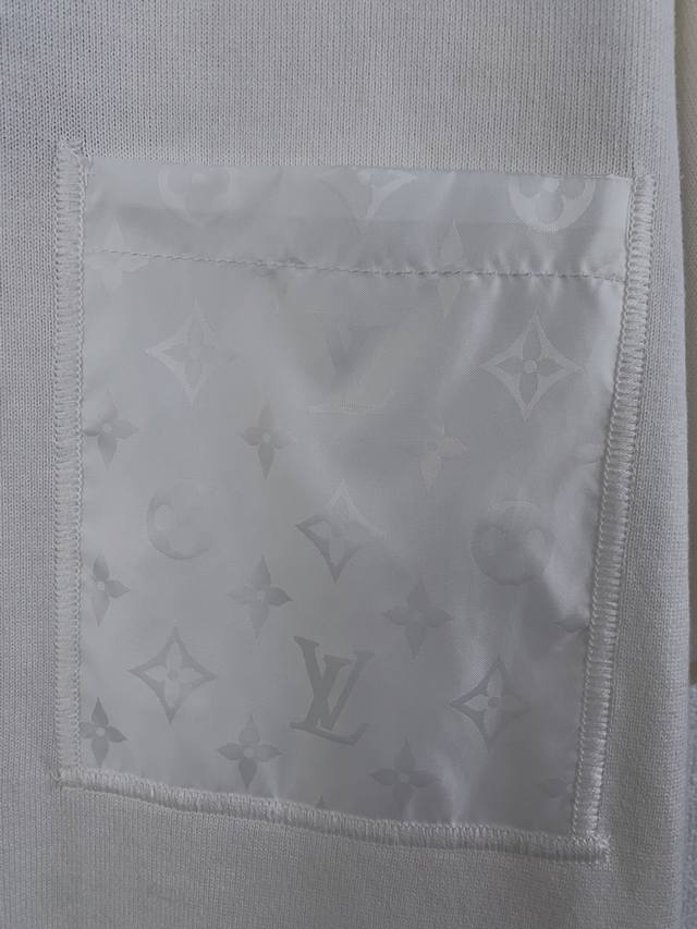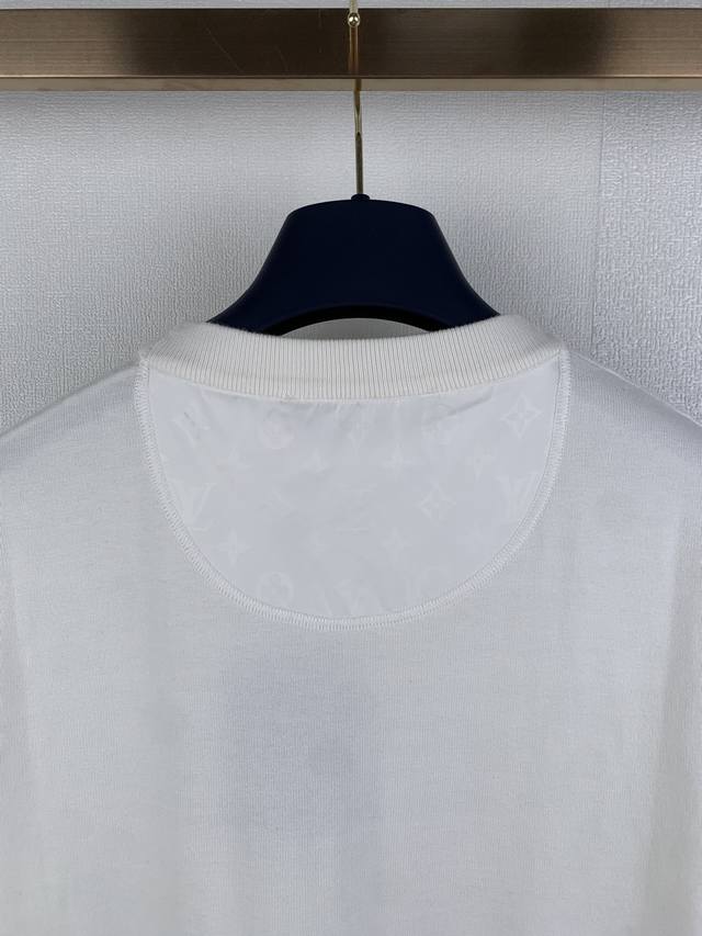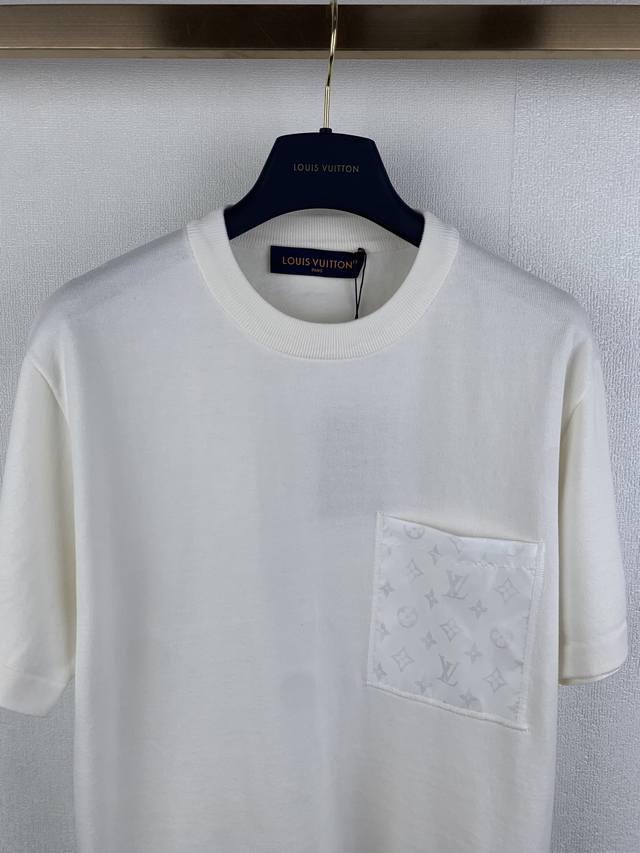 Louis Vuitton 25Ss New Knitted Jacquard Woven Nylon Pocket Short-Sleeve T-Shirt. Made from imported pure cotton, the fabric is delicate and soft, like a second skin, providing an unparalleled wearing experience. Lustrous nylon embellishments adorn the chest pocket and the crescent-shaped back neck detail, subtly blending the brand's essence and showcasing a unique style. Every detail has been meticulously crafted, highlighting quality and prestige. Size: Xs, S, M, L.