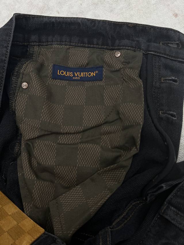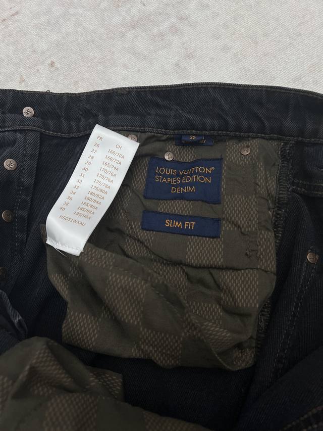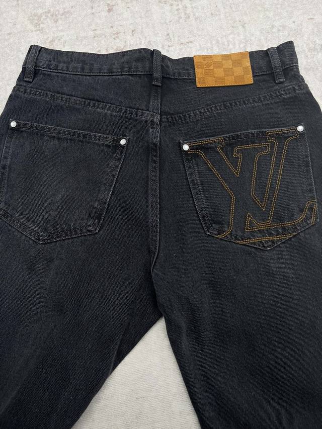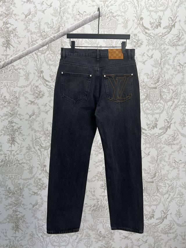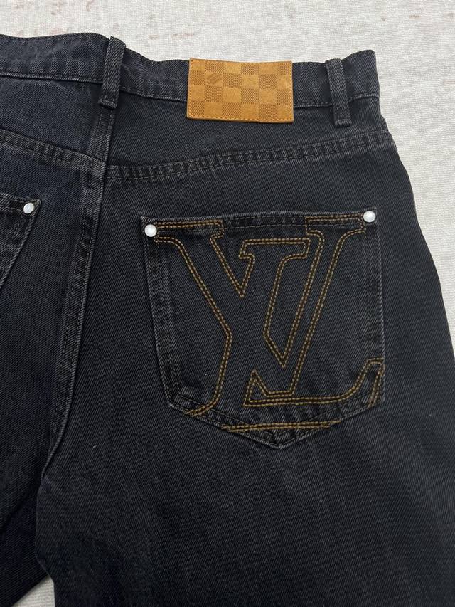Louis Vuitton 25Ss New LV Skateboard Jeans. These skateboard jeans are made of high-quality Japanese denim, reinterpreting a classic design with meticulous craftsmanship. The back pocket features embroidered LV lettering, while the wallet pocket and waistband are adorned with suede patches. They are versatile enough to style various looks. Sizes: 30, 32, 34, 36.