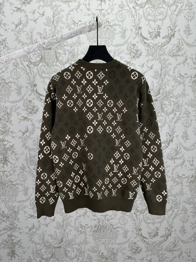 Louis Vuitton 25Ss New Monogram Pullover. This long-sleeved pullover is made from a plush blend knit fabric, featuring a full-width Monogram Surplus jacquard pattern that echoes the camouflage theme. The understated base is adorned with mottled logo patterns. Easily layered for various winter looks. Sizes: S, M, X, L.