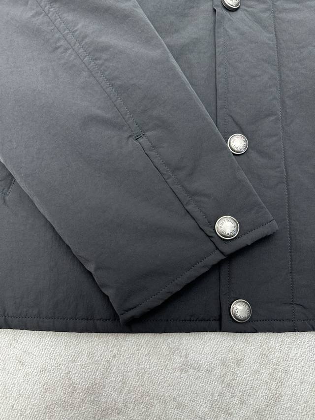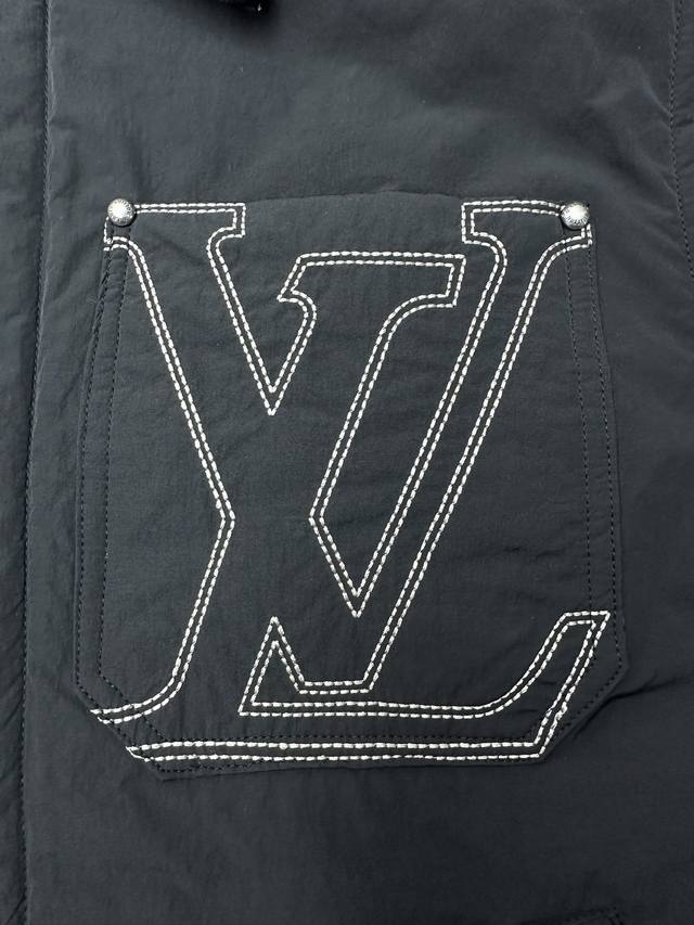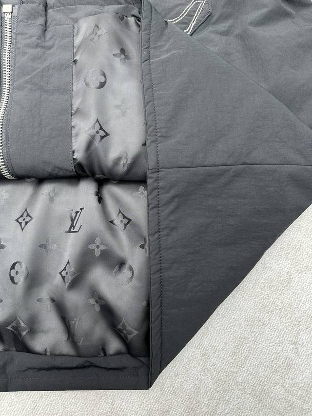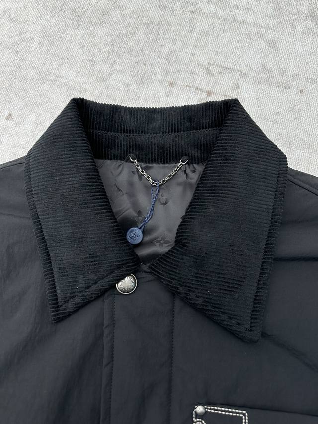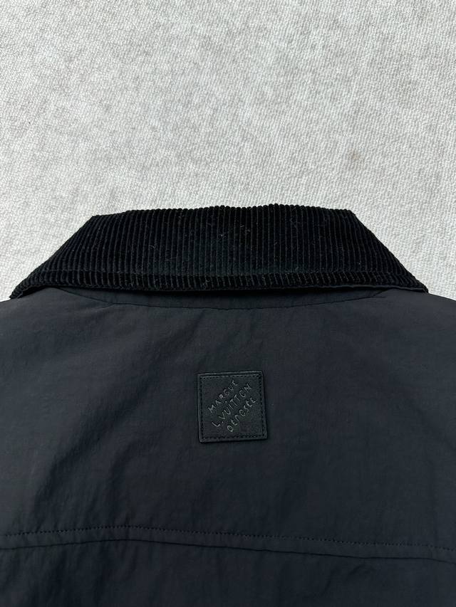 Louis Vuitton 25Ss New Nylon Blend Work Jacket. This work jacket features a sophisticated corduroy collar, suitable for all seasons; the water-repellent nylon blend body and quilted lining combine functionality and warmth. On a simple silhouette, the LV embroidery on the chest pocket and the Marque L.Vuitton D
