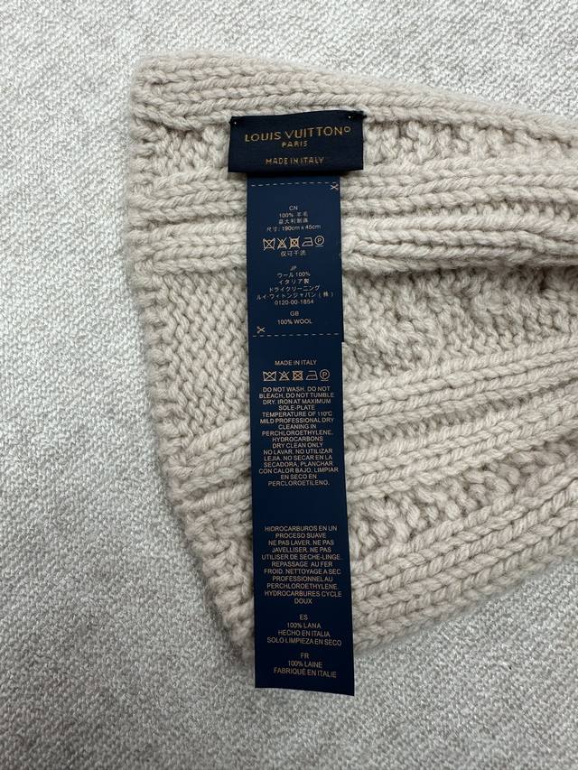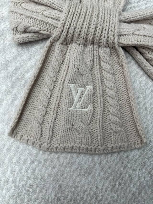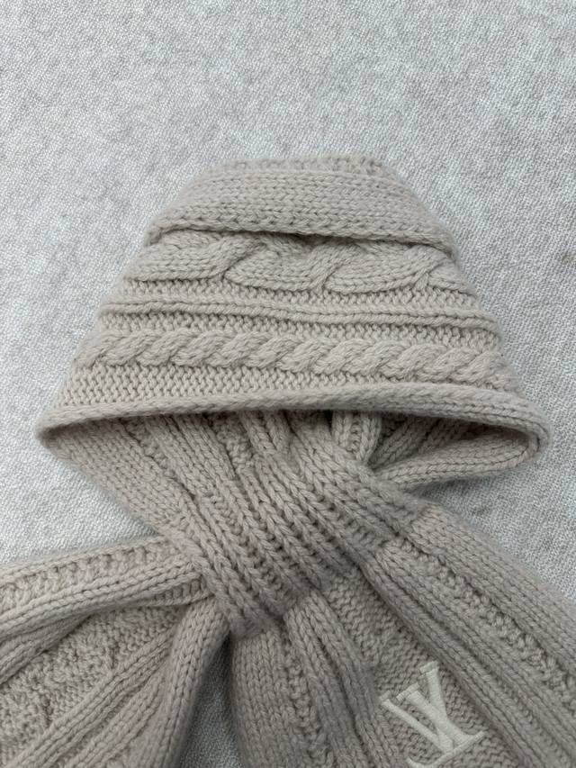 Louis Vuitton 25Ss New Only Lv Mini Cable Scarf. This scarf features sheep's wool with embroidered Lv logos, subtly conveying a wintery style. The classic cable knit has been upgraded for a more refined texture and comfortable warmth, and the open design allows for easy adjustment of the fit. DDD