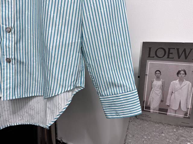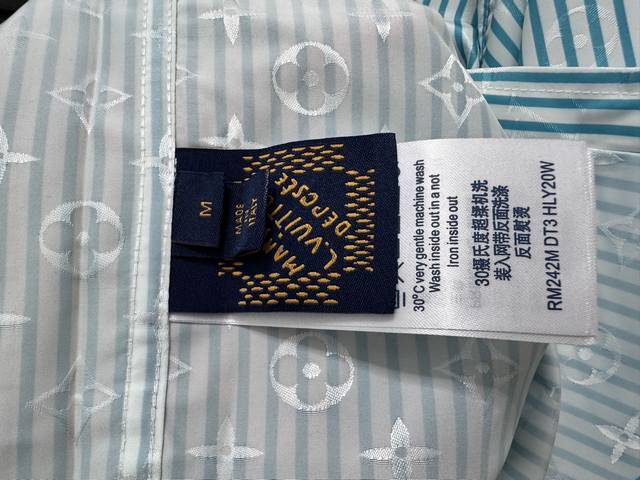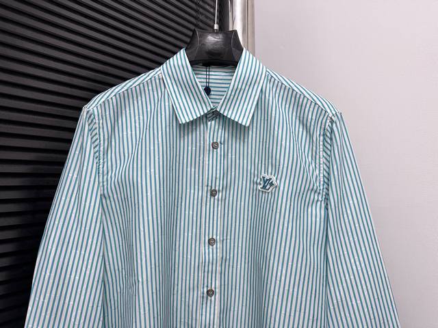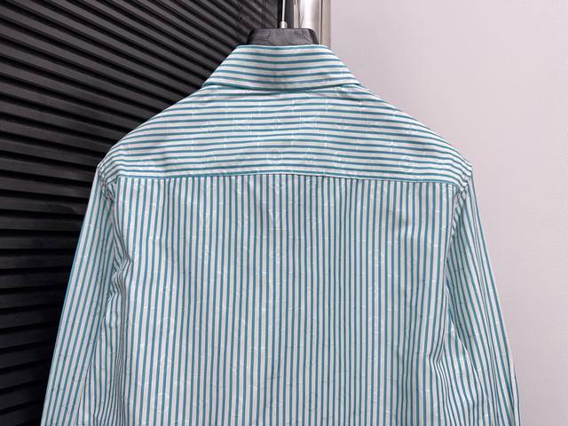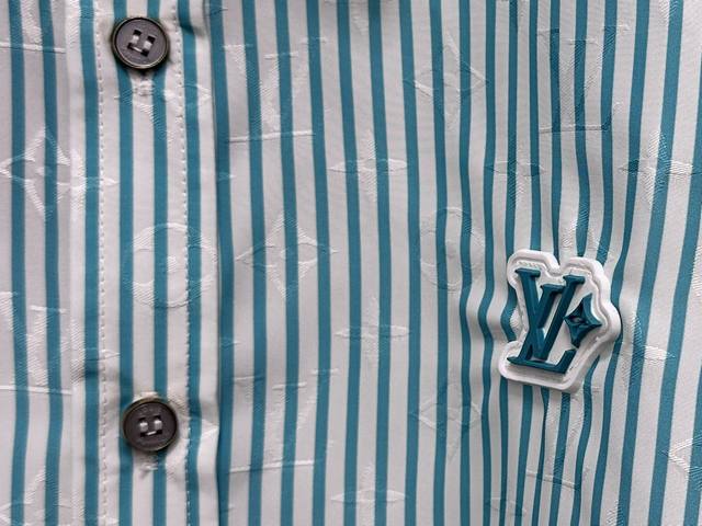 Louis Vuitton 25Ss New Striped Cotton Button-Up Long-Sleeve Shirt. Featuring a Monogram jacquard background, the shirt is enriched with vibrant striped prints for added visual depth. The Louis Vuitton Flower rubber patch on the chest adds a touch of brand elegance. It can be layered with other striped pieces from the same collection. Sizes: S-XL