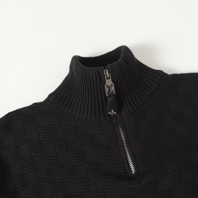 Louis Vuitton 25Ss Plush Blend Half-Zip Pullover Sweater DDD Authentic product purchased for 18,000 DDD 40-count combed cotton yarn blend DDD Uses German Soto 7-needle imported knitting machine Ddd Wool fermented wash Ddd Wool jacquard DDD Custom 1:1 chain Ddd Custom 1:1 leather label DDD Custom 1:1 trademark DDD Fit DDD Sizes: S, M, L Ddd Dry cleaning recommended. This product is made of wool and is not machine washable DDD