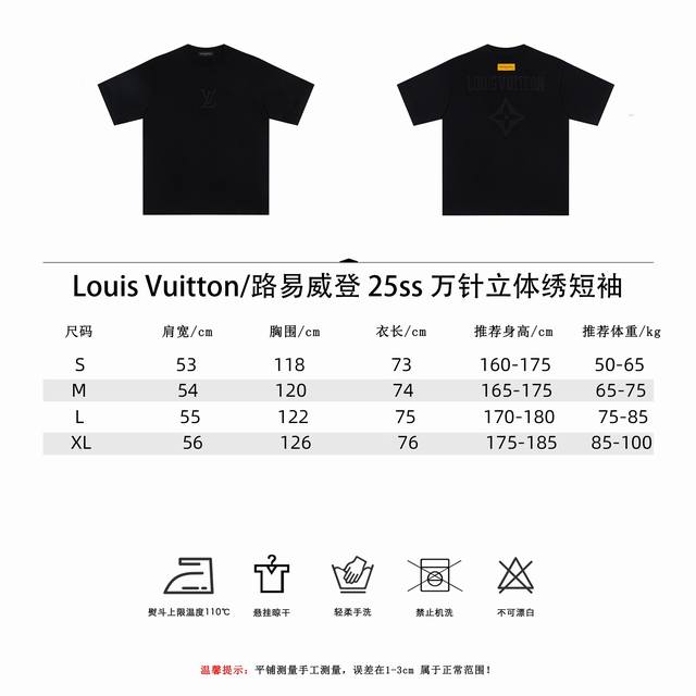 Louis Vuitton 25Ss Short-Sleeve T-Shirt with 10,000-Needle 3D Embroidery. Made with 280g 36-count eco-friendly reactive fabric, custom-woven and dyed in the same dyeing vat as the original design, featuring 10,000-needle towel embroidery, all custom-made accessories, and top-quality inner lining with binding tape. Colors: Black, White. Sizes: Xs-L.