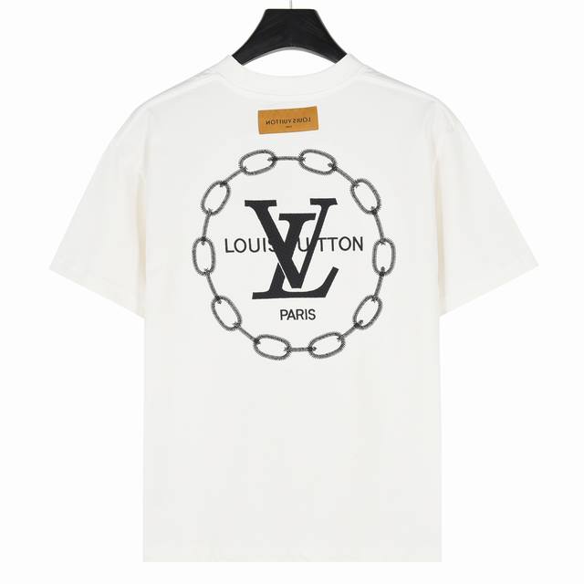 Louis Vuitton 25Ss Short-Sleeve T-Shirt with Chain Circle Embroidery on the Back. Made with high-weight combed cotton, custom 1:1 ribbed fabric, comfortable and skin-friendly. Custom-dyed fabric with high weave density, excellent drape, and resistance to deformation. The thick weave combined with tight spinning does not affect breathability. High color saturation. Custom-made accessories include three labels, a four-leaf clover embroidery on the chest, and a large chain circle logo embroidery on the back. A versatile and stylish short-sleeve T-shirt with a loose fit that flatters all body types. Colors: Black, White. Size: S-XL.