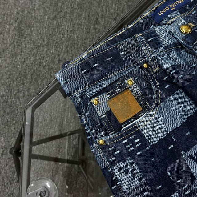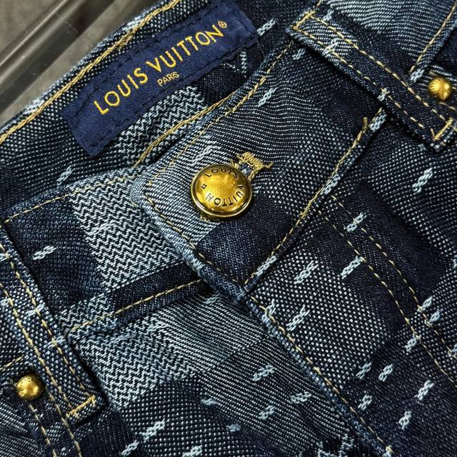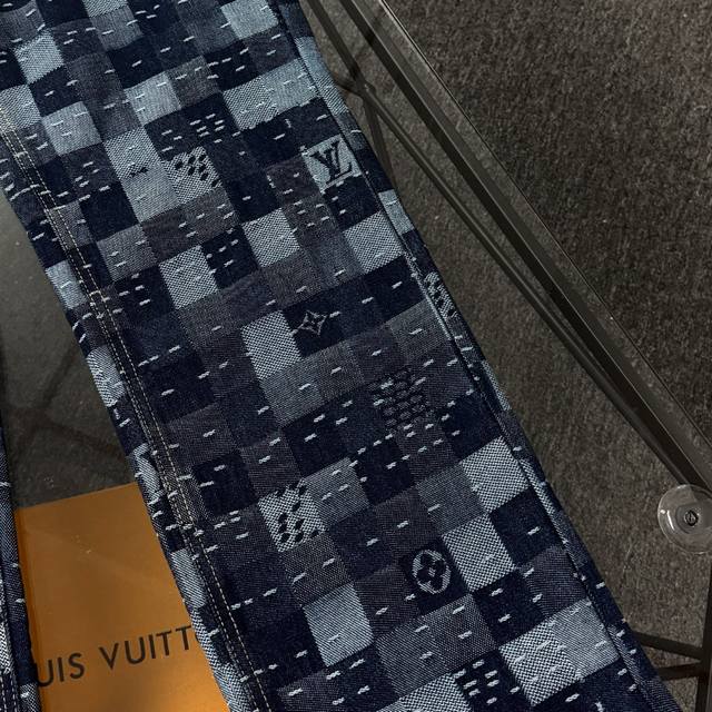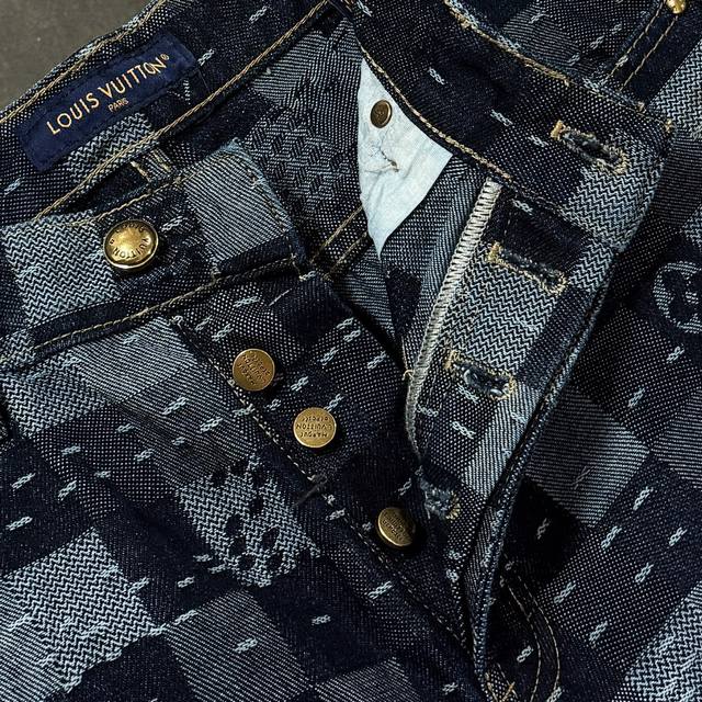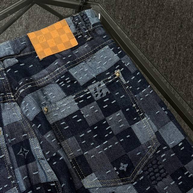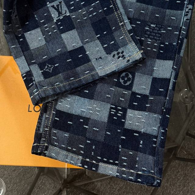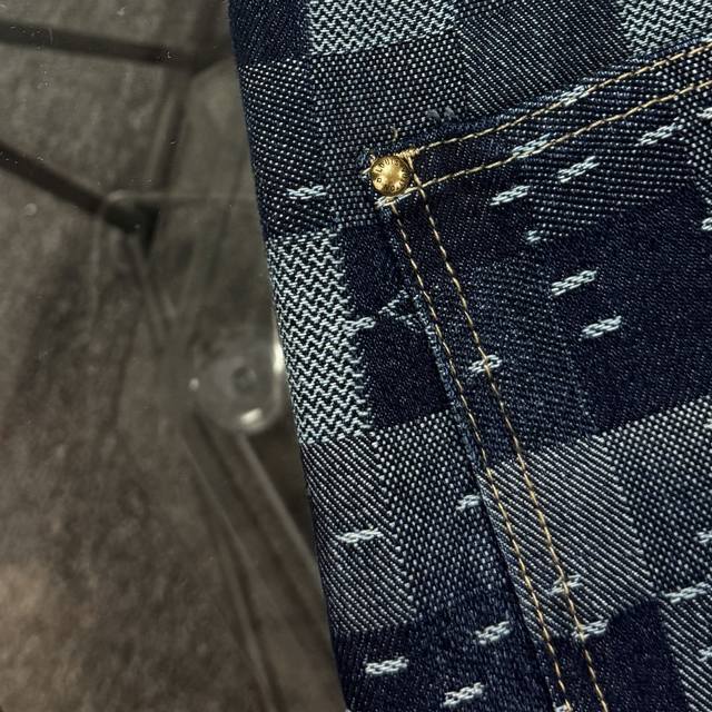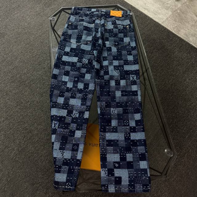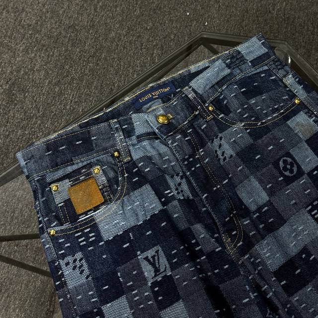 Louis Vuitton 25th Anniversary High-Quality Embroidered Check Jeans, 430g Premium Custom Denim Fabric, No Deformation or Shrinkage, All Labels Included, Unisex Style, Craftsmanship: Embroidery, Color: Blue, Size: S-XL