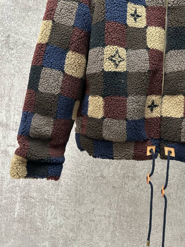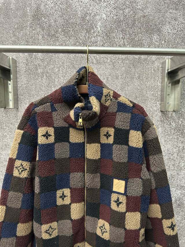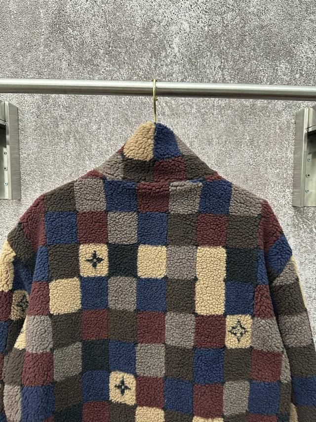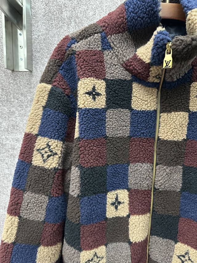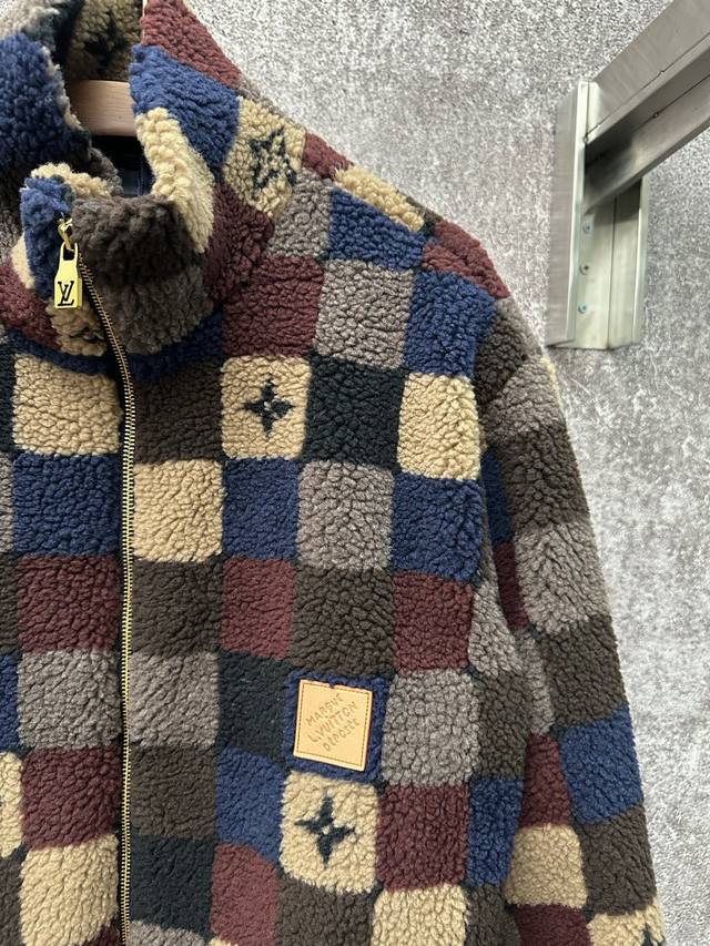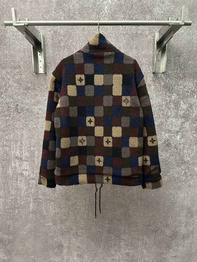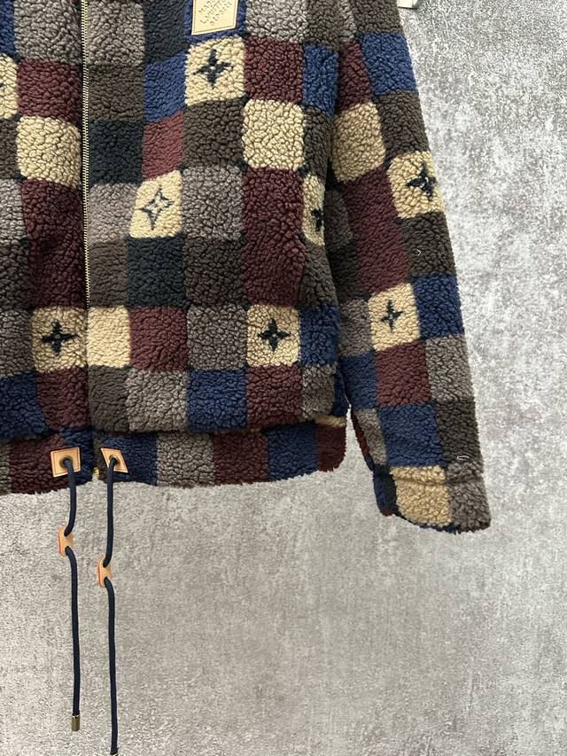 Louis Vuitton 26Ss High-neck Fleece Zipper Jacquard Pattern Fleece Jacket Men's Checkered Pattern Ddd Sizes: SML XL DDD