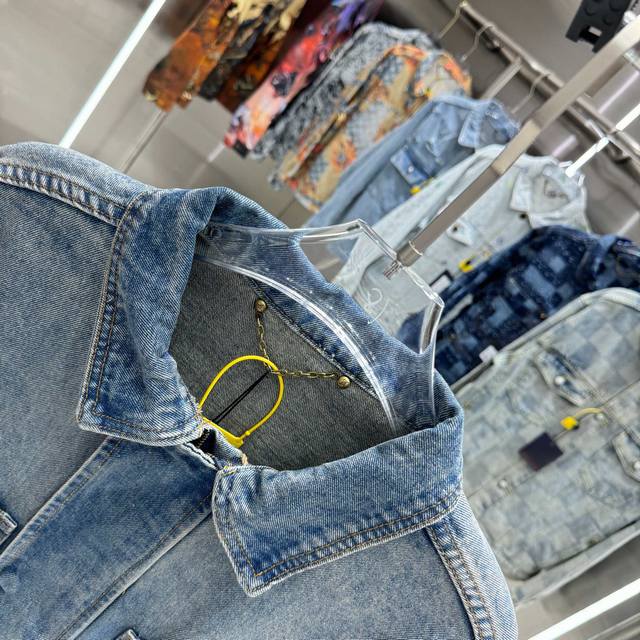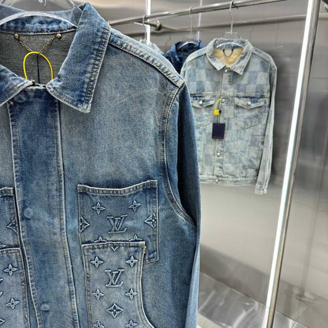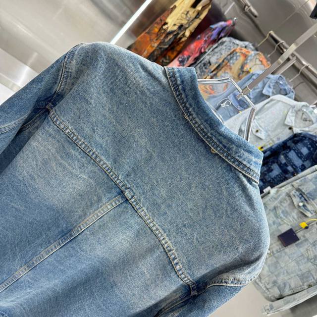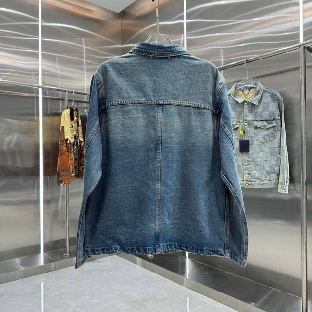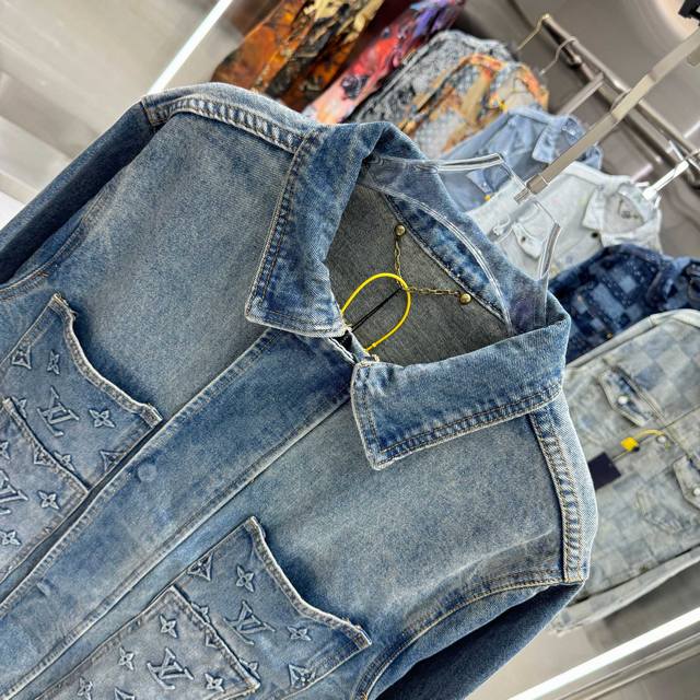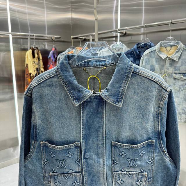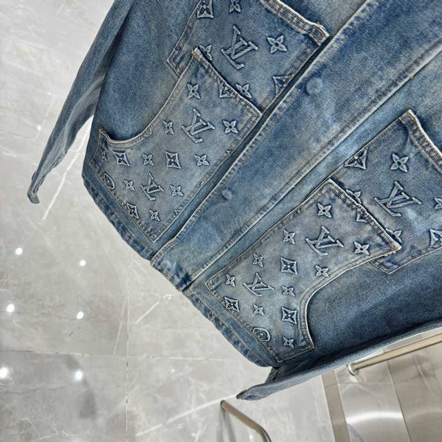 Louis Vuitton all-logo denim jacket. A luxurious denim masterpiece. It's that time of year again for all kinds of jackets, and this is a piece you'll absolutely adore in person. The sparkling rhinestones and embroidery are exquisite! The slightly oversized denim jacket has such a great feel; fashionable ladies, grab it! The wash color is super unique, and paired with a short-sleeved top, it instantly elevates your style. The distressed and faded details throughout make it feel like you're wearing a starry night sky. A versatile piece in your wardrobe, it gets more beautiful as the night goes on! Blue. Sizes 46, 48, 50, 52.