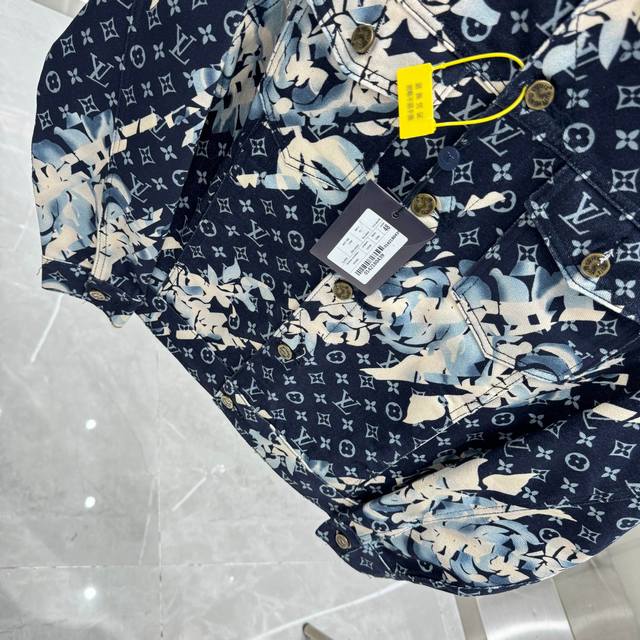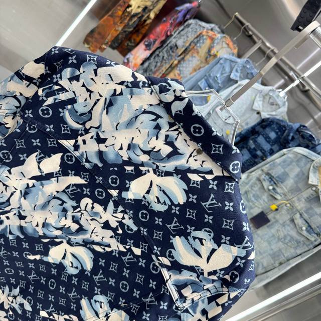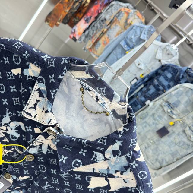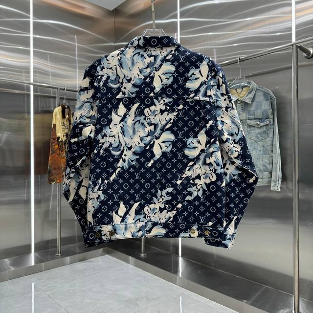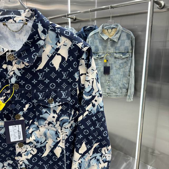 Louis Vuitton All-Logo Denim Jacket. A luxurious denim masterpiece. It's that time of year again for all kinds of jackets, and this one is sure to make you want it in person! The sparkling rhinestones and embroidery are exquisite! The slightly loose-fitting denim jacket has such a great feel; fashionable ladies, grab it! The wash color is super unique, and paired with a short-sleeved top, it instantly elevates your style. The distressed and faded details throughout make it feel like you're wearing a starry night sky. A versatile piece in your wardrobe, it gets more beautiful as the night goes on! Blue. Sizes 46, 48, 50, 52.