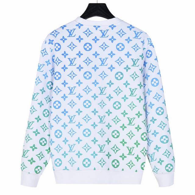 Louis Vuitton all-over gradient crew neck sweatshirt. Upgraded quality, original fabric, same 400g double-strand terry cloth dyed in the same vat, very comfortable to the touch. New spring/summer style, same as the official version, fashionable and unique, super versatile and good-looking sweatshirt, suitable for both men and women, a must-have. All tags, labels, and wash labels are complete. Size: S-XL.