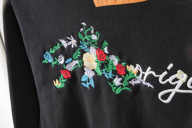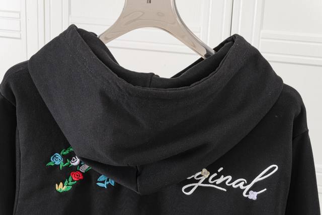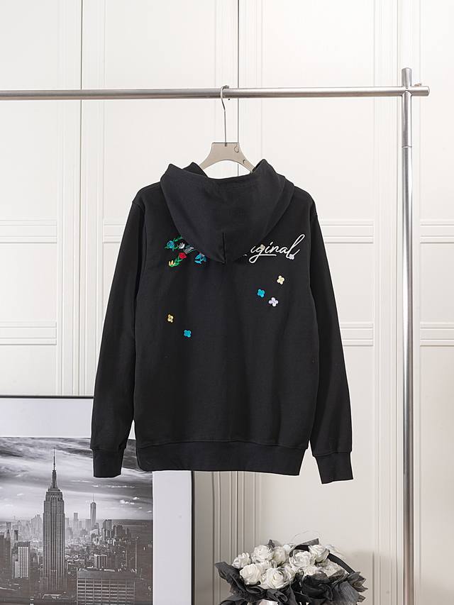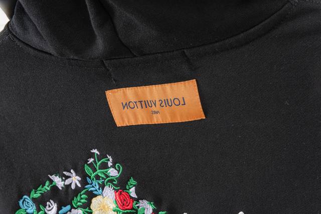 Louis Vuitton Autumn 2025 Floral Tajima Embroidery Original Couple's Casual Hooded Sweatshirt. Made from custom 440g terry and American acid-washed distressed fabric, laser-burnished appliqu