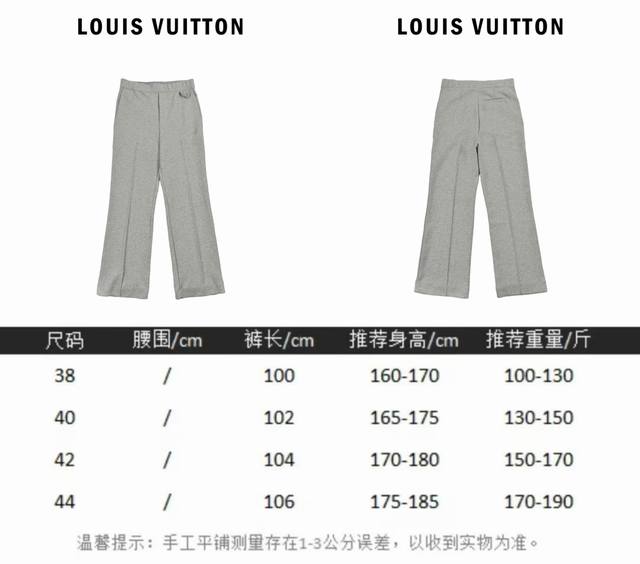 Louis Vuitton Brooch-Embroidered Space Cotton Trousers (Originally purchased for ?18,200). Made entirely of 360g soft, stretchy custom space cotton, these trousers feature a classic silhouette crafted from densely spun cotton knit. Elegant pleats at the front and back add a touch of sophistication, creating an inverted triangle shape that flatters the legs. A Staples strap adorns the lower waist, and the brooch and logo embroidery on the left leg utilize a three-dimensional padding embroidery technique. Lightweight and compact cotton trousers, with a standard mid-rise straight leg and a relaxed, slightly flared cut that effectively flatters the legs, concealing any figure flaws while highlighting their length. A must-have for early autumn, formal yet stylish, a perfect example of business casual. Size: 38-44
