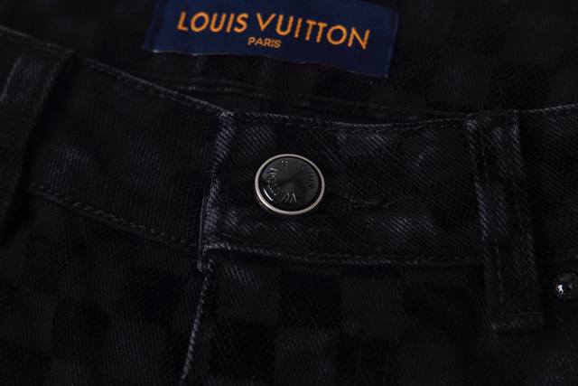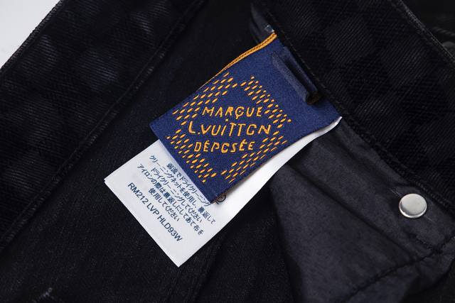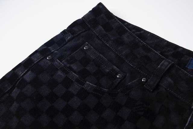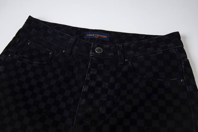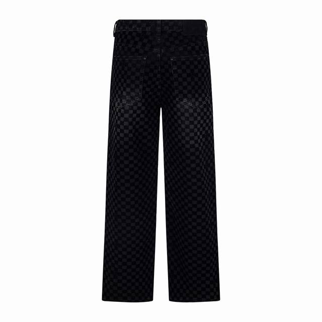 Louis Vuitton classic all-over checkerboard jeans, unisex. Highly detailed texture, custom lining, calfskin buckles, exclusive custom-made metal pearl buttons, laser lettering, and classic Kou Tajima embroidery. Heavy-duty handwashing for a delicate, breathable and comfortable feel, and mother-of-pearl buttons make this a must-have for fashionistas. Every photo captures their irresistible charm. The denim and jacquard craftsmanship create a premium feel with a nostalgic feel. Sizes: S-Xl
