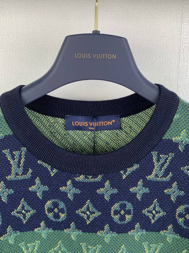 Louis Vuitton Color Block Jacquard Knit Crew Neck Sweater (Original Design) Fabric: Knit Fabric (Ddd) Technique: Jacquard Fit: Slim Fit (Ddd) Description: This short-sleeved crew neck sweater evokes baseball with its full Monogram Heritage pattern, adding a preppy touch to everyday looks. The color-blocked horizontal stripes incorporate 3D optical illusion Monogram elements, while the exquisite jacquard craftsmanship interprets traditional sportswear style. The overall stitching is straight and delicate, the fabric is comfortable and soft, and the consistent color allows for easy pairing with other sweaters to create a stylish look suitable for various occasions. Custom accessories included, all tags are complete, unisex (Ddd) Sizes: SML-XL (Ddd)