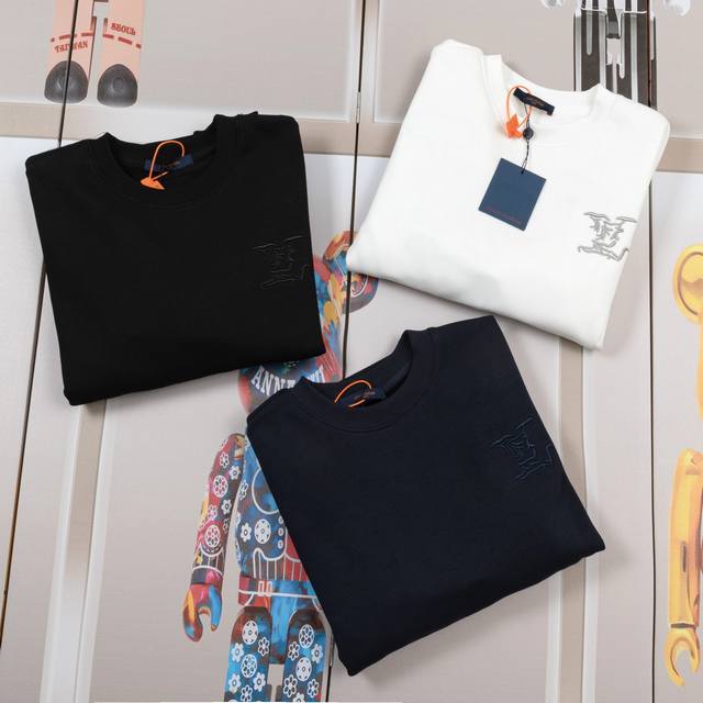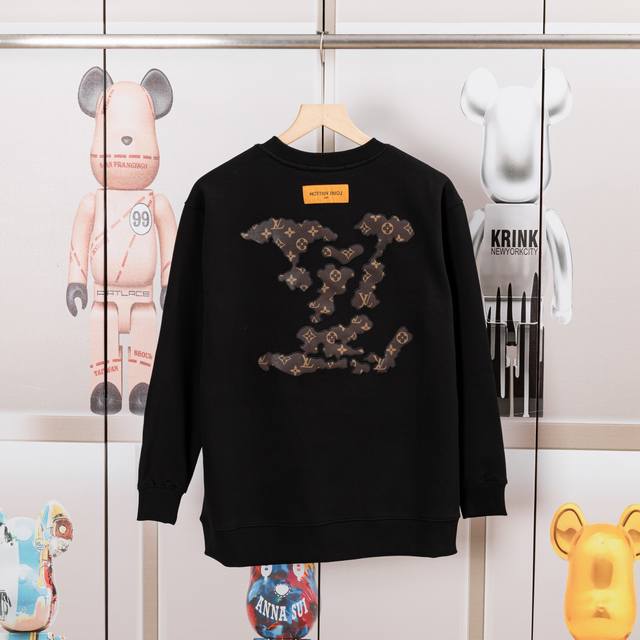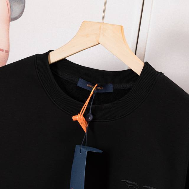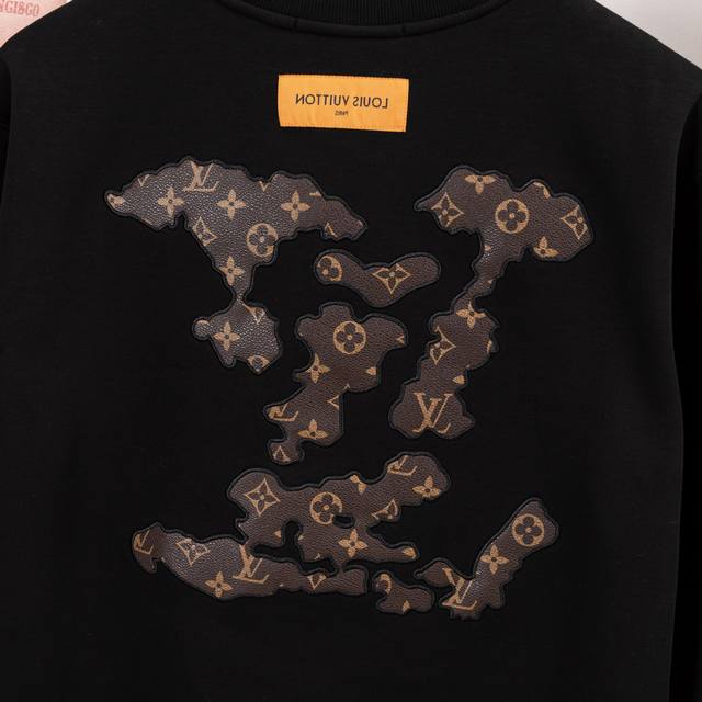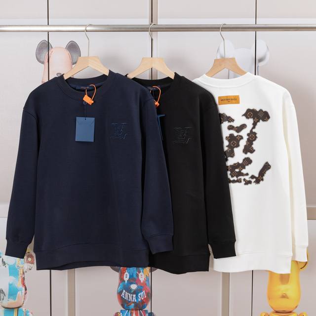 Louis Vuitton Crew Neck Leather Embroidered Sweatshirt. Features high-end genuine leather embroidery on the front and back, and uses a special composite fabric. Replicates the trendy look with special craftsmanship. Custom-dyed, complete with all three labels. Not your average market version; quality guaranteed. Unisex style. Colors: Black, White, Navy Blue. Sizes: S, M, L, XL. Style Number: A3356.