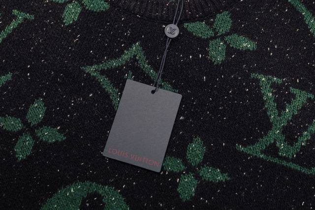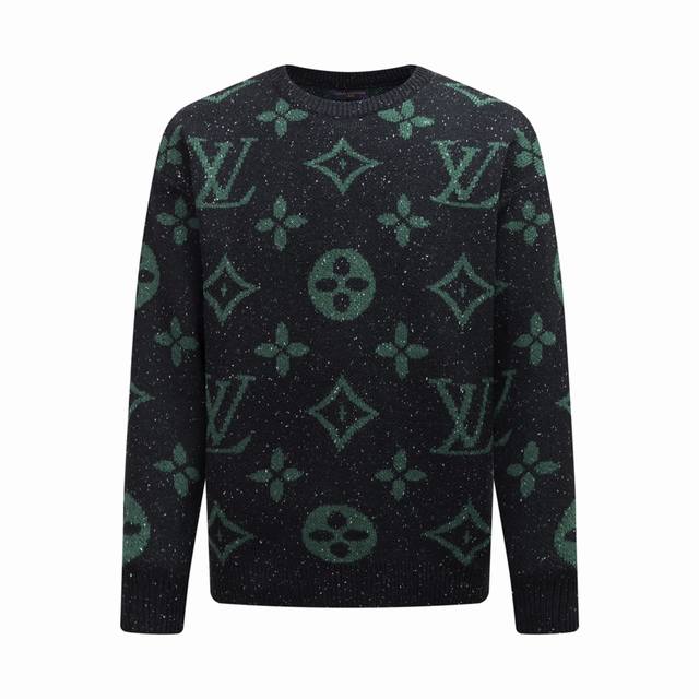 Louis Vuitton Crew Neck Pullover Sweater with Logo Jacquard All-Over Design, Lon