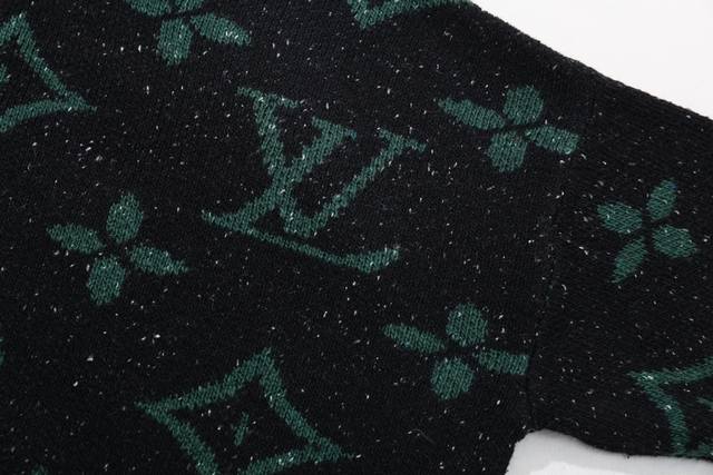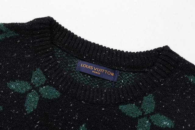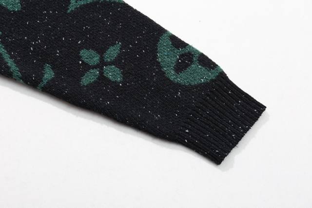 Louis Vuitton Crew Neck Pullover Sweater with Logo Jacquard All-Over Design, Long Sleeve, Emphasizing Details and Quality, Unisex Style, Color: Black, Sizes: Xs, S, M, L