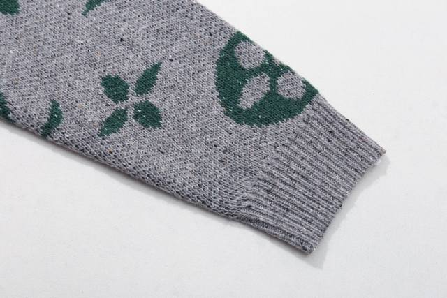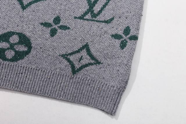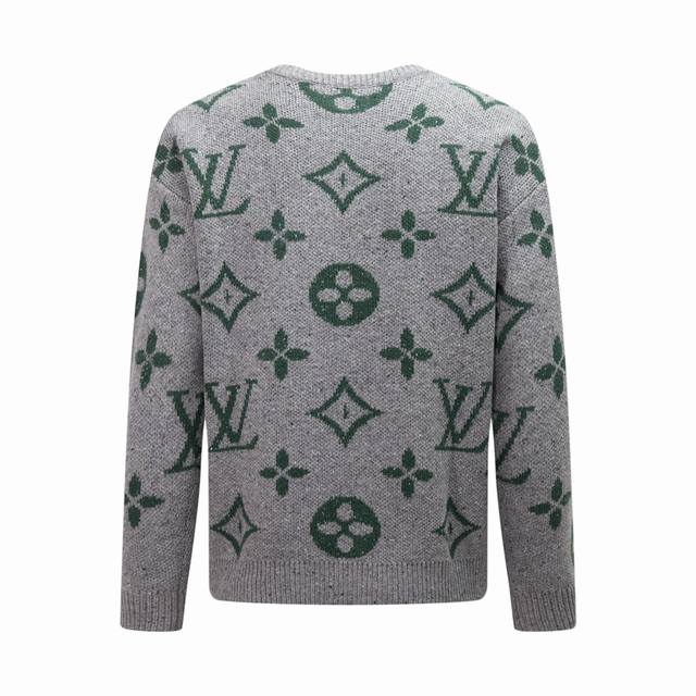 Louis Vuitton Crew Neck Pullover Sweater with Logo Jacquard All-Over Design, Long Sleeve, Emphasizing Details and Quality, Unisex Style, Color: Gray, Sizes: Xs, S, M, L