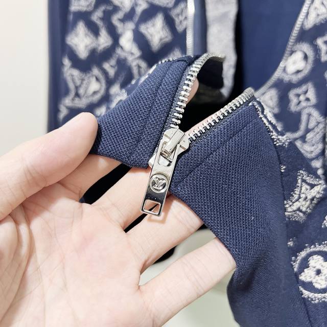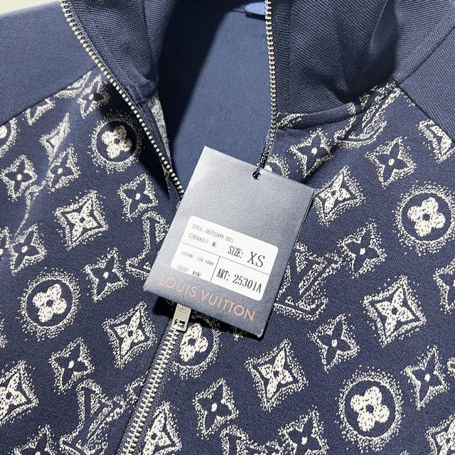 Louis Vuitton custom fabric stand-up collar coat. Classic iconic logo print patchwork design. Officially synchronized high-quality version. Stylish, versatile, and trendy. Pure original quality fabric. Complete with hangtag, neck label, and wash label. Color: Blue. Sizes: XS-L.