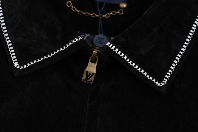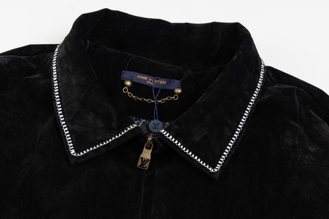 - Excellent fabrics are the key to creating an outstanding garment, so Lv specially uses the original mold to customize the leather suede fabric, using chain embroidery collar and border pockets, with tens of thousands of stitches embroidered.