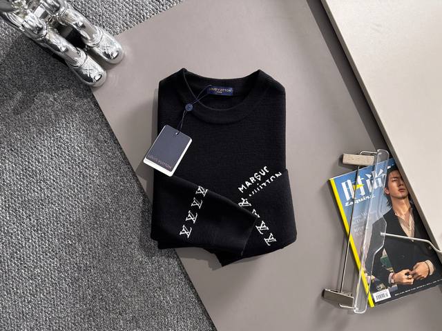 Louis Vuitton embroidered sweater, unisex, sourced from a trading company. A very high-end item with a striking appearance and distinctive design. The sleeves feature classic red color blocking, a stunning and fashionable detail. The fabric is top-notch, extremely soft and stretchy, with a smooth and delicate feel against the skin, offering excellent comfort and breathability, and superior warmth! It looks amazing on, perfect for layering during the season, exuding sophistication! A must-have for any wardrobe, this sweater is a versatile piece that will elevate your look. Sizes: S-2XL