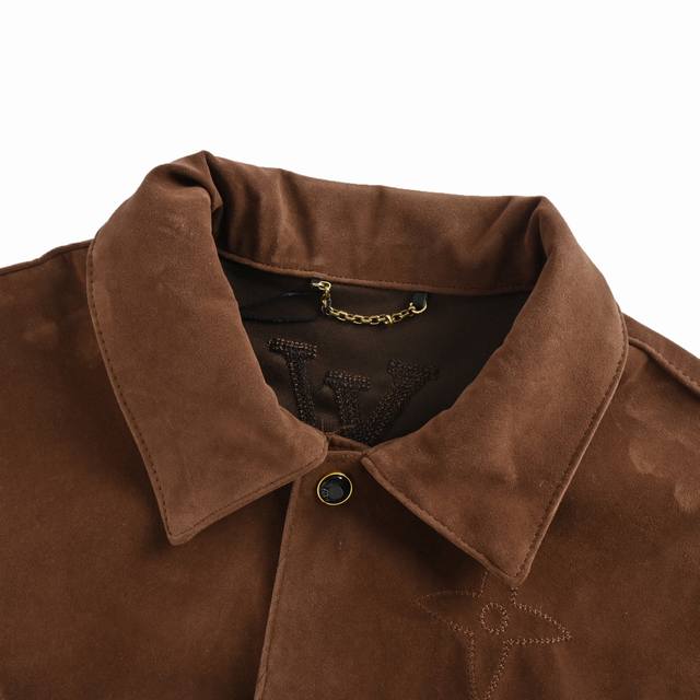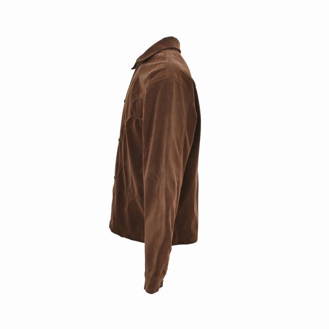 ). Made with custom French velvet fabric, the deep brown color displays different shades under different lighting, giving it a very unique character. Exquisite embroidery with details comparable to the original, and custom hardware with a smooth, delicate finish! A subtly luxurious design, this double-pocket shirt jacket is sure to be a versatile and stylish piece. Unisex! (