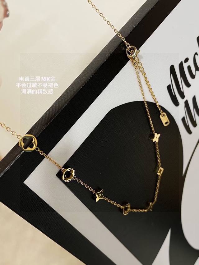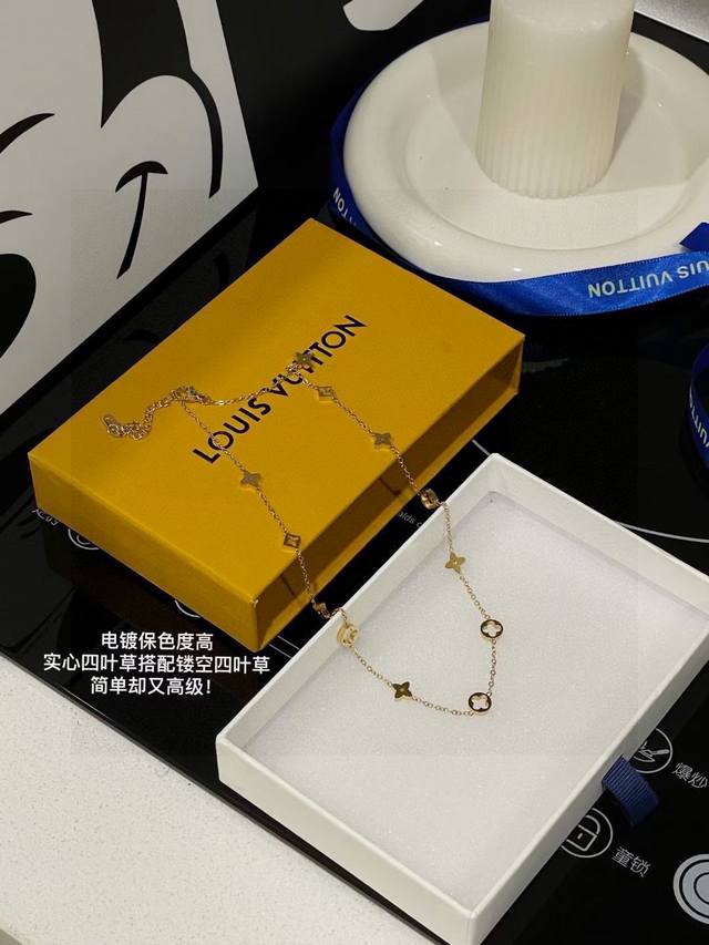 Louis Vuitton four-leaf clover openwork necklace, can be made into a double-layer bracelet with full boutique packaging. The beauty hidden in the details
