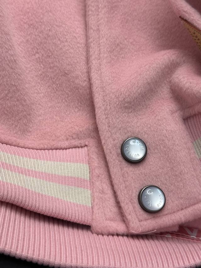 Louis Vuitton Fw25 Nigo Series Baseball Jacket with Pearl Button and Leather Tri