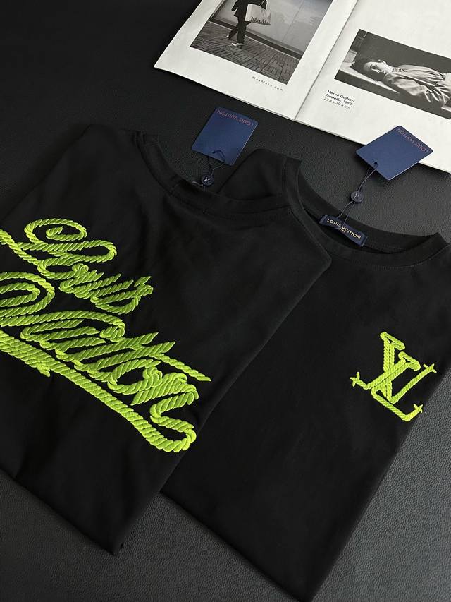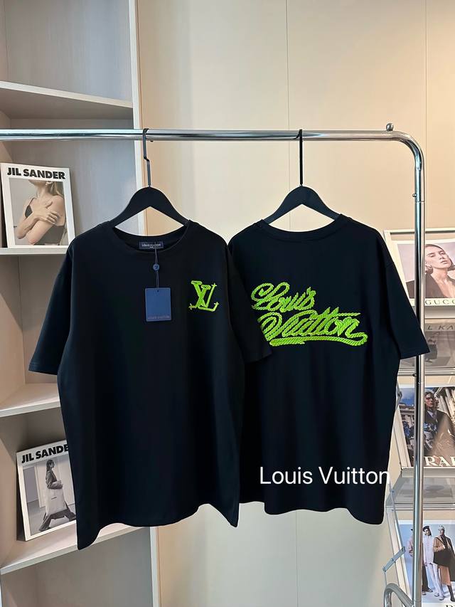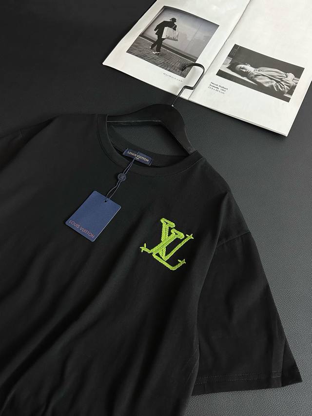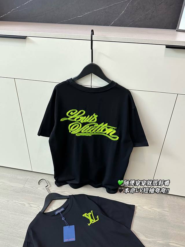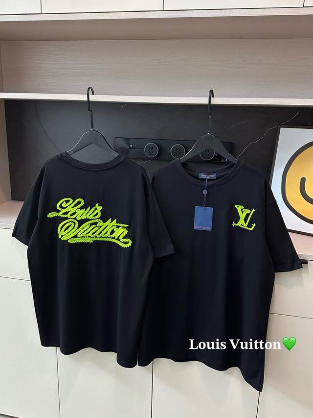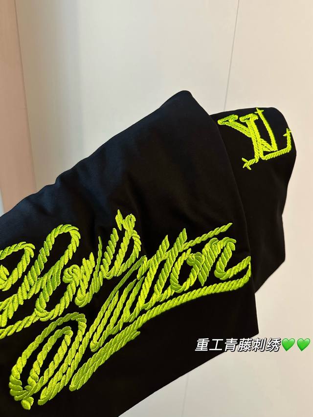 Louis Vuitton heavy green vine embroidered short-sleeved T-shirt Looks good in a