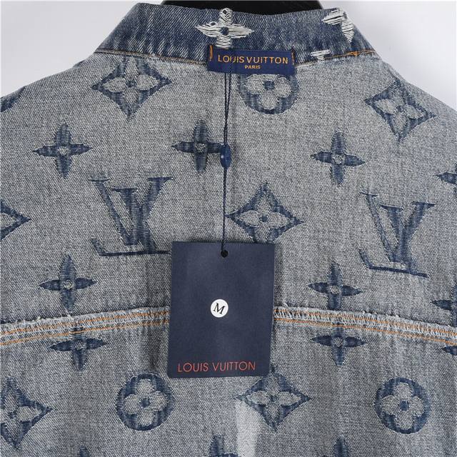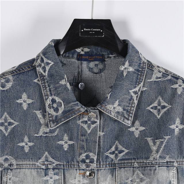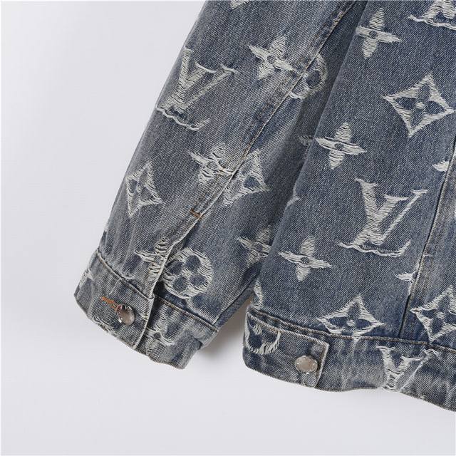 Louis Vuitton Heavy-Duty Washed Classic All-Over Embroidered Jacquard Denim Jacket. This is a very heavy-duty jacket with a classic monogram print, perfect for early autumn. The denim fabric is machine washable without deformation. The distressed wash adds a touch of sophistication. Perfect for casual photos. The gradient color is incredibly elegant. Sizes: S-XL.
