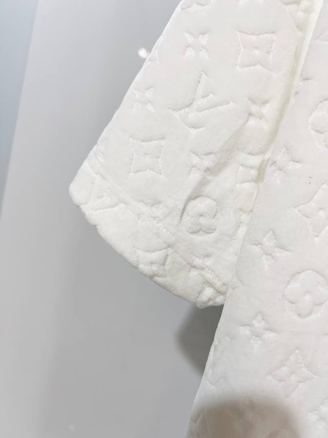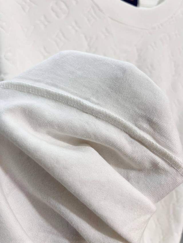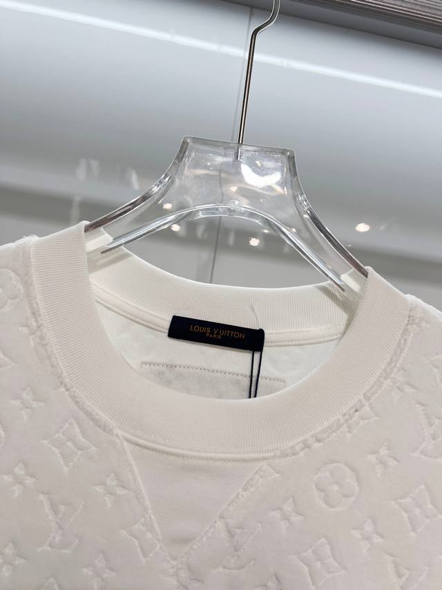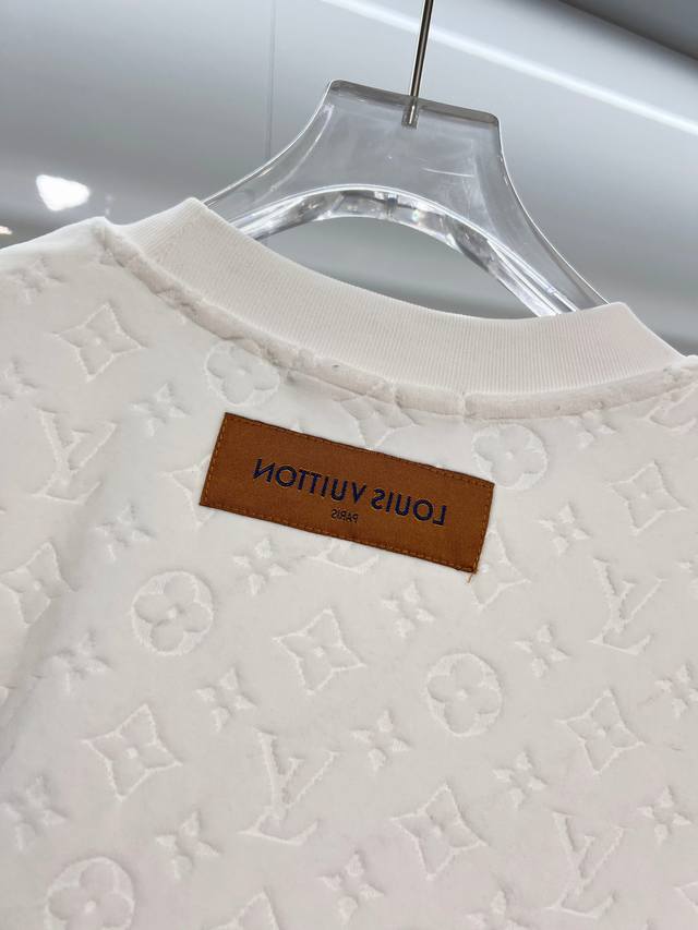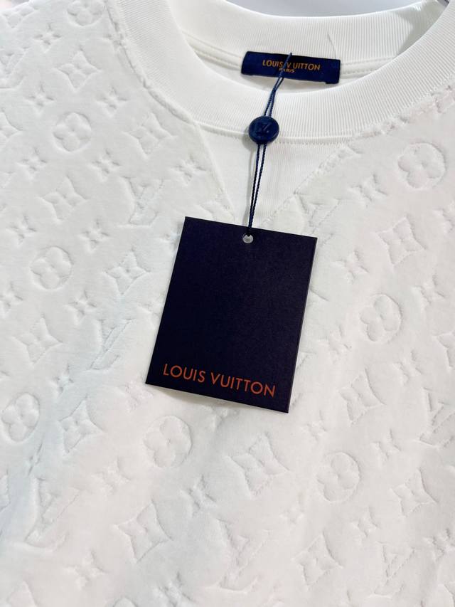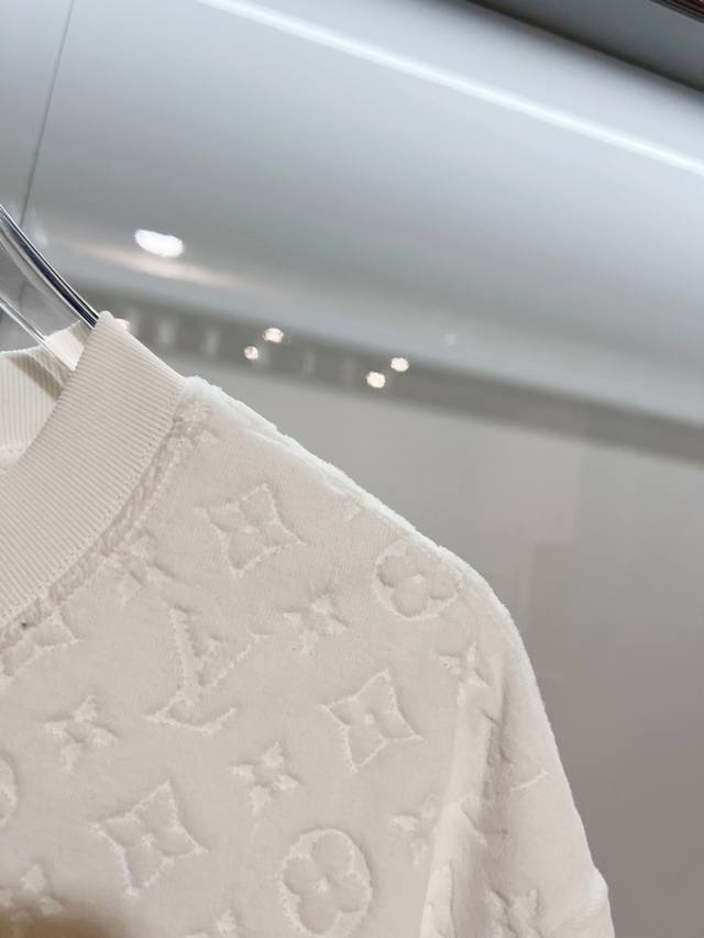 Louis Vuitton High-Quality 320g Crew Neck Short Sleeve T-Shirt. Brand Classic 1V, all-over subtle monogram trefoil logo, jacquard weave. 2026 Spring/Summer Official Synchronized High-Quality Version. Fashionable, Versatile, Trendy. Original Quality Fabric. Complete with hangtag, neck label, and wash label. Color: White. Sizes: S, M, L, XL.