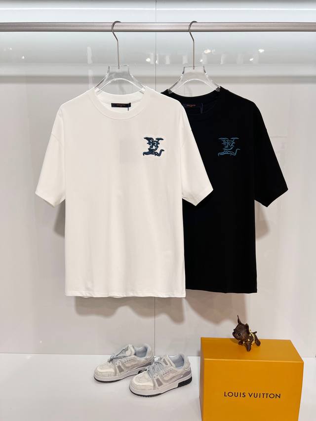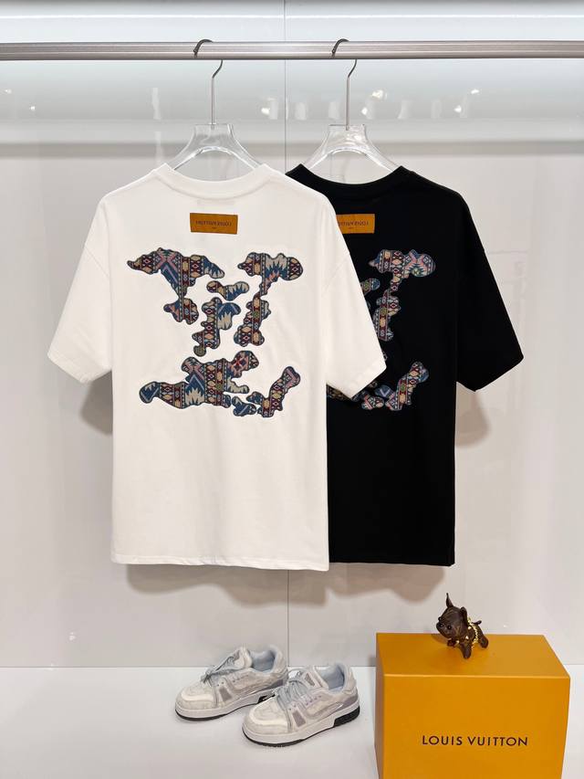 Louis Vuitton High-Quality 320g Crew Neck Short Sleeve T-Shirt. Brand Classic 1V. Heavy-duty embroidered logo with colorful clouds on the back. 2026 Spring/Summer Official Synchronized High-Quality Version. Fashionable, Versatile, Trendy. Pure Original Quality Fabric. Complete with hangtag, neck label, and wash label. Colors: Black, White. Sizes: S, M, L, XL.
